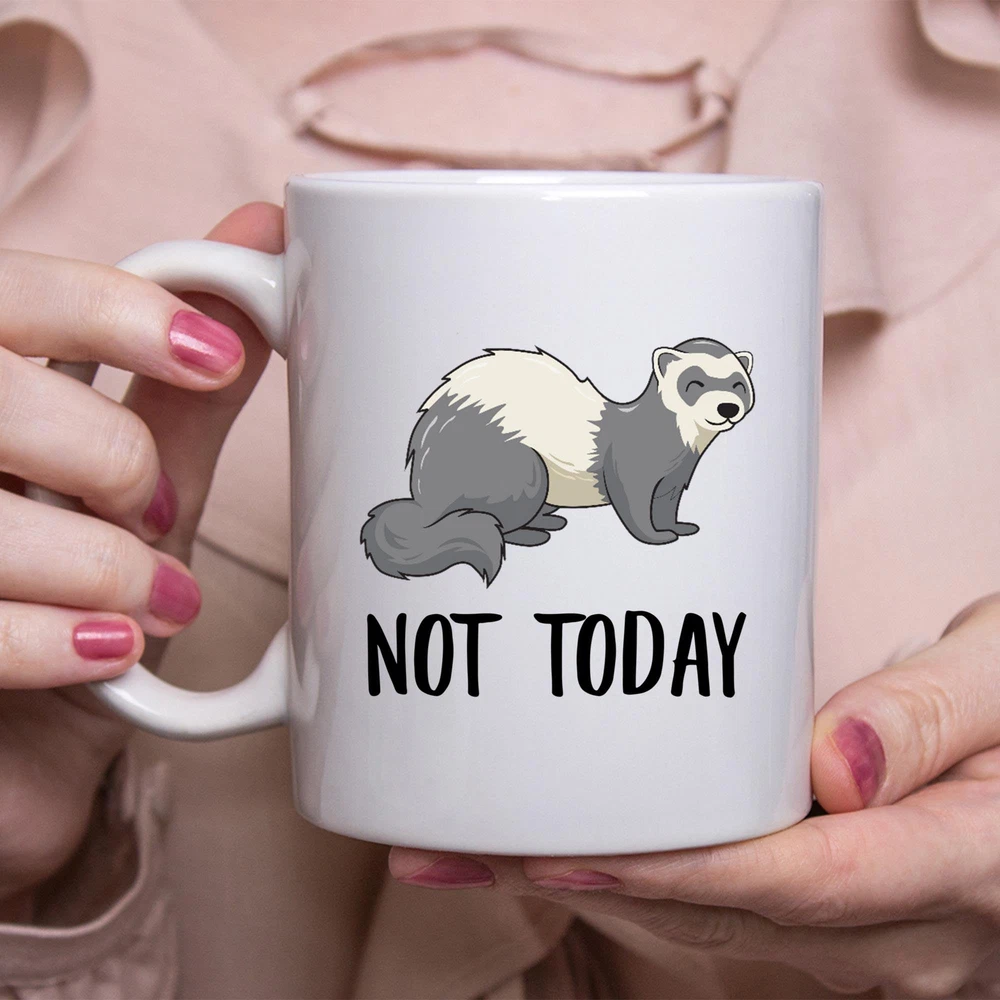 Funny Ferret Cartoon Not Today Mug Lazy Gift For Women Coffee Mug Coffee Cup Product Details.. This high quality 11oz. ceramic white mug has a premium hard coat that provides crisp and vibrant color reproduction sure to last for years. Perfect for all hot & cold beverages. The highest quality printing possible is used. It will never fade no matter how many times you wash it. Material: 100% Ceramic. Print both sides. Dishwasher and Microwave Safe. High Gloss + Premium White Finish. Printed in the U.S.A. Personalized & Custom. We support personalized and custom mug to add custom, when placing an order, you can add notes to the "order note" in shipping address section. Also you can contact us directly via message. Shipping Info. Ready to ship in 1 to 2 business days, All products are made-to-order and proudly printed in the United States. Shipped by USPS and DHL, You will receive your order in 5-7 days. Replace & Refund. All products are defective during shipping broken, chipped will be replaced free of charge. You are not satisfied with the product, we will refund 100% money to you. If any other issues arise, please do not hesitate to message, we would be more than happy to assist you.