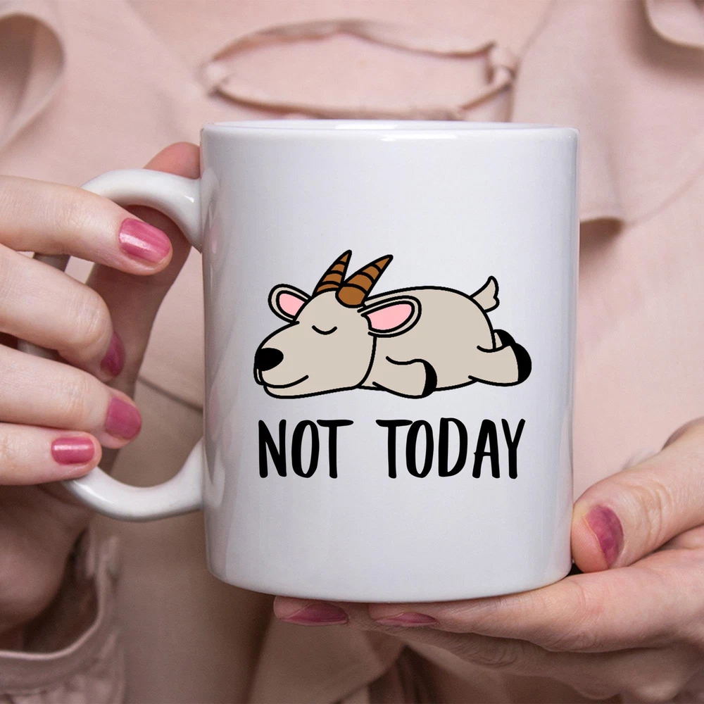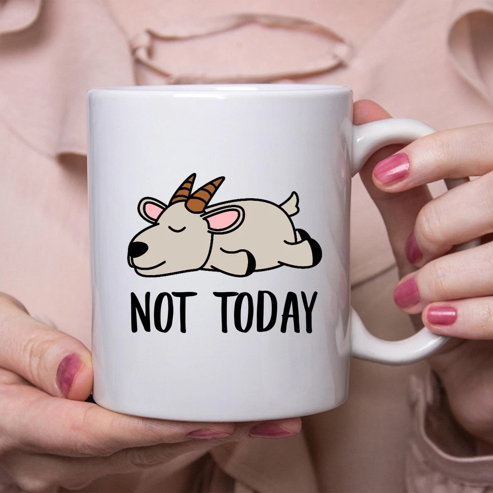 Funny Goat Lazy Not Today Mug Lazy Gift For Women Coffee Mug Coffee Cup Product Details.. This high quality 11oz. ceramic white mug has a premium hard coat that provides crisp and vibrant color reproduction sure to last for years. Perfect for all hot & cold beverages. The highest quality printing possible is used. It will never fade no matter how many times you wash it. Material: 100% Ceramic. Print both sides. Dishwasher and Microwave Safe. High Gloss + Premium White Finish. Printed in the U.S.A. Personalized & Custom. We support personalized and custom mug to add custom, when placing an order, you can add notes to the "order note" in shipping address section. Also you can contact us directly via message. Shipping Info. Ready to ship in 1 to 2 business days, All products are made-to-order and proudly printed in the United States. Shipped by USPS and DHL, You will receive your order in 5-7 days. Replace & Refund. All products are defective during shipping broken, chipped will be replaced free of charge. You are not satisfied with the product, we will refund 100% money to you. If any other issues arise, please do not hesitate to message, we would be more than happy to assist you.