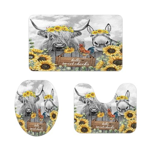 Return Policy Fast Delivery Trusted seller Funny Highland Cow Donkey Bath Rugs for Bathroom, Farmhouse Western Animal Cow Chicken with Flowers on Fence Sunflower Non Slip Flannel Bathroom Rug, Dry Fast Water Absorbent Bath Mats Product Description 3 Pieces Bathroom Accessories Set SIZE--17"X29" Bath Mat; 14"X17" U-shaped contour mat; 13"X17" O-shaped toilet cover mat Bath Mat Design: Our mats are clearly printed and rubber backed to protect floors from water damage. MATERIAL--Soft elegant anti slip flannel mat USE: This rug will bring a range of pastel colors to your room. It can also be used as a door mat, indoor/outdoor mat, kitchen rugs, floor mat. Care Instructions: Hand Washable or Machine Washable Cold Water Fine Cycle Hang Dry Only It goes well with shower curtains and any other bathroom accessories in a variety of colors. Shipping Returns Payment Shipping Shipping is FREE to all addresses other than APO/PO boxes in the lower 48 states. All our stock ships from US-based warehouses. Shipped via USPS or UPS (depending on location and package weight) Unless stated otherwise, all orders will ship within 24-72 hours of your payment being processed. Check our feedback to see the great reviews of FAST shipping we offer. Returns Seller does not accept returns Payment We currently accept payment via eBay managed payments only. Once payment is cleared, we will dispatch your shipment within 1-3 business days. Please refer to the "Shipping" tab for more information regarding shipping speed to your destination.