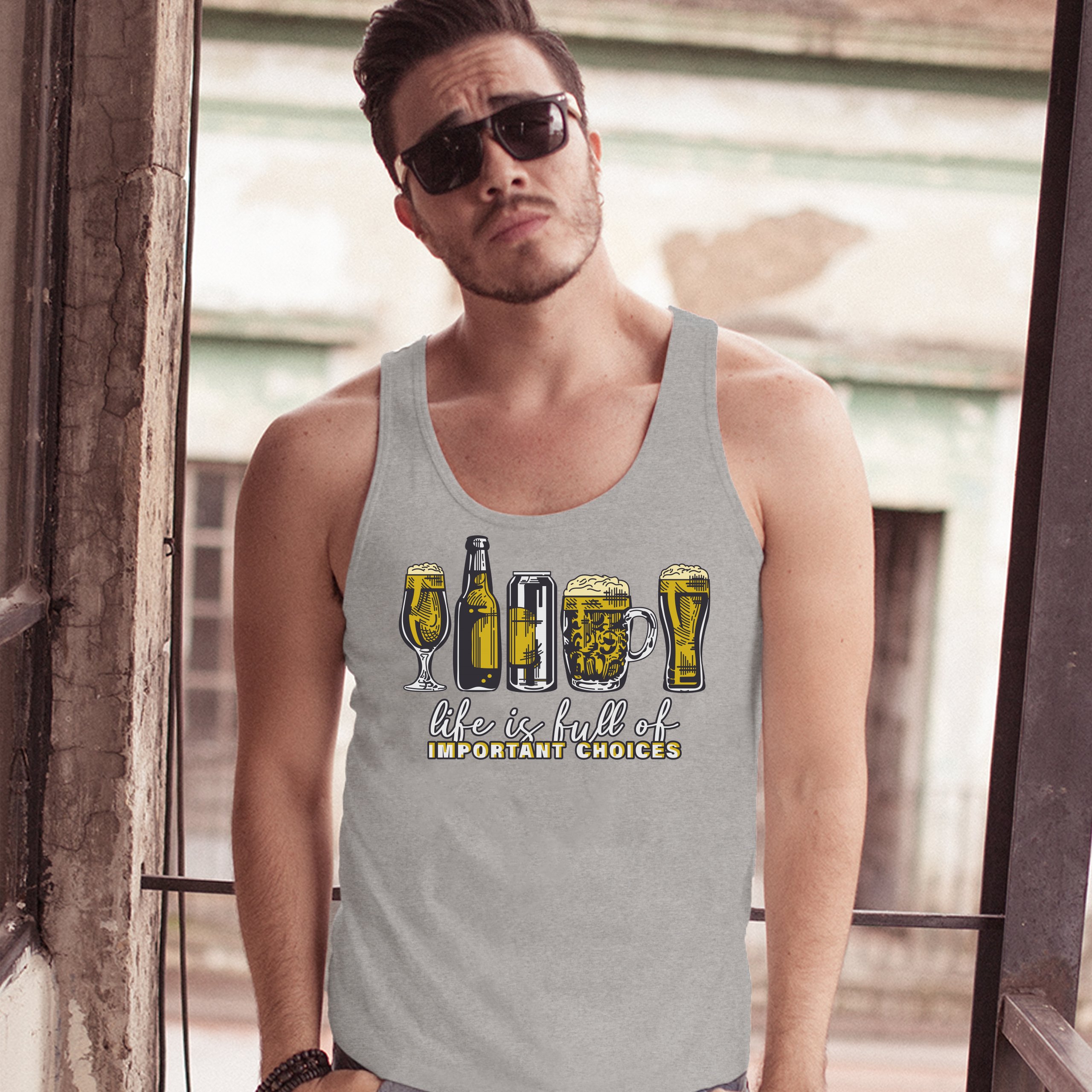 Fast & Free Shipping HIGH QUALITY 1 DAY HANDLING Life is Full of Important Choices Tank Top Funny Beer Drinking IPA Men's Top ITEM DESCRIPTION Brand New Men's Tank Top High Quality Print Classic Fit 100% Pre-Shrunk Cotton Sport Grey : 90/10 cotton/polyester Soft Fabric Printed in the USA Also Available In WASHING INSTRUCTIONS: turn inside out and wash in cold water on a delicate cycle of your washing machine. Try to avoid dryer or set it on low heat. To minimize shrinkage we recommend to air dry. PLEASE NOTE: The print may appear smaller on larger sizes. Due to the many variations in monitors and browsers, actual colors may vary slightly from what appears online. PAYMENTS: We accept the following payment methods: Paypal, All Major Credit Cards (processed through eBay's Payment System, no account necessary). We do not ship package until the payment is cleared. if you have a problem with payment, please contact us. SHIPPING: We offer FREE domestic shipping within the continental US! Your order will be shipped within 1 business day of receiving payment (Monday-Friday) Shipping services we offer: Domestic Orders: USPS First Class Mail, Priority Mail and Express options. International Orders: USPS First Class Mail, Priority Mail and Express options. We are NOT responsible for any foreign customs duties or taxes. We do not refund postage for unclaimed, undeliverable or refused packages. If a package is returned as undeliverable unclaimed or refused, it is the customers responsibility to follow up with the postal carrier. In the very unlikely event that your item is lost or damaged during post, then WE are responsible and will issue either a full refund or replacement. RETURNS: If you are not completely satisfied with your purchase, you can return the item within 30 days and get a full refund if the item is defective, damaged, or an error is made on our end. If you would like to exchange the item, please contact us through eBay Messages. All returns must be initiated through eBay Returns System. If 30 days have gone by since your purchase, unfortunately we can’t offer you a refund or exchange. And returned item can be shipped back to customer at customers expense, or will be disposed within 7 days. To be eligible for a return, your item must be unused, unwashed and in the same condition that you received it. Custom made items (including custom images, writing or other customization requested by customer) are not eligible for a refund or exchange. Once your return is received and inspected, we will notify you of the approval or rejection of your refund. If approved, your refund will be processed, and a credit will automatically be applied to original method of payment, within 3-4 days. All payments and refunds are processed by eBay's Payment system. If a refund has been issued, but you do not see the funds in your account within 3-4 days, please contact eBay Support. You will be responsible for paying for your own shipping costs for returning your item. Shipping costs are non-refundable. if you receive a refund, the cost of return shipping will be deducted from your refund. Depending on where you live, the time it may take for your exchanged product to reach you, may vary. You should consider using a trackable shipping service or purchasing shipping insurance. We don’t guarantee that we will receive your returned item. Visit our ebay store to see more amazing items T-Shirts Sweatshirts Tank Tops