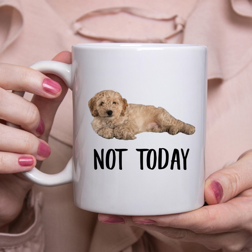 Funny Lazy Dog Mom Coffee Mug with Cockapoo Gold Not Today Design