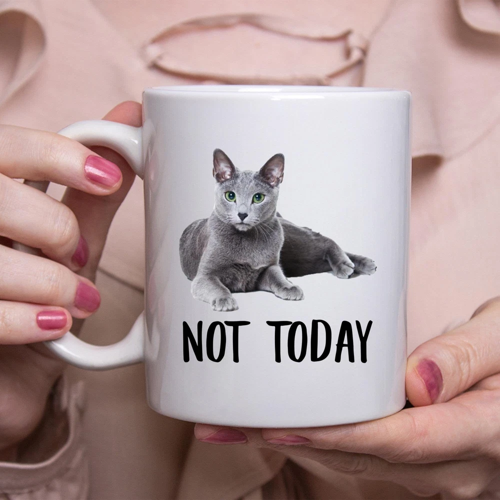 Funny Russian Blue Cat Slate Gray Not Today Cat Mug Lazy Gift For Cats Lovers Product Details.. This high quality 11oz. ceramic white mug has a premium hard coat that provides crisp and vibrant color reproduction sure to last for years. Perfect for all hot & cold beverages. The highest quality printing possible is used. It will never fade no matter how many times you wash it. Material: 100% Ceramic. Print both sides. Dishwasher and Microwave Safe. High Gloss + Premium White Finish. Printed in the U.S.A. Personalized & Custom. We support personalized and custom mug to add custom, when placing an order, you can add notes to the "order note" in shipping address section. Also you can contact us directly via message. Shipping Info. Ready to ship in 1 to 2 business days, All products are made-to-order and proudly printed in the United States. Shipped by USPS and DHL, You will receive your order in 5-7 days. Replace & Refund. All products are defective during shipping broken, chipped will be replaced free of charge. You are not satisfied with the product, we will refund 100% money to you. If any other issues arise, please do not hesitate to message, we would be more than happy to assist you.