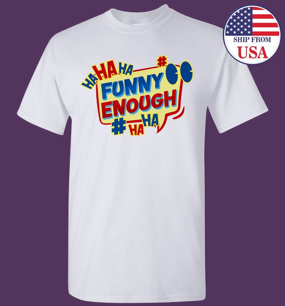Welcome.. Keep it light with this "Haha Funny Enough" t-shirt. Features a vibrant pop-art, comic book style design with hashtags. A sarcastic and colorful shirt for the social media generation and class clowns. Additional Description: Product Features Innovation you can feel. Made with 100% U.S. cotton and the latest breakthrough in soft cotton technology, the Heavy Cotton family has been remastered for improved printability, quality and comfort you can see and feel Classic width, rib collar Taped neck and shoulders for comfort and durability Classic fit, seamless body Transitioning to high-performing black recycled tear-away label Safety Green is compliant with ANSI - ISEA 107 high-visibility standards Fiber content varies by color, see color list for exceptions Proud member of the U.S. Cotton Trust Protocol Made with OEKO-TEX certified low-impact dyes We reduce plastic waste by the removal of polybags from all products except color White Occasion: Everyday, at home, out and about, sports, outdoor activities, traveling and more. Care Instruction: Choose a gentle wash program and use cold or low-temperature water. Ship to Worldwide: -Sent from Richardson, TX United States. -Shipment To USA Using USPS takes about 2 to 7 days after the item shipped. Sent from China: -Shipment Into Australia and Canada Via China Post Using 4PX/Yanwen/YunExpress takes about 14 to 21 days after the item shipped. -Shipment All Other Countries worldwide destinations sent via China Post/4PX/Yanwen/YunExpress takes about 14 to 28 days after the item shipped. Handling Orders will be processed within 1-3 Business Days before delivery (excluding weekends & holidays). Occasionally packages are delayed, depend on your country shipping rule. Please be patient for this reason. For Holiday Period (eg: Christmas, Chinese New Year and etc), shipping will take more longer time to reach. Please be patient when awaiting shipment. Item will be shipped to your paypal shipping address.