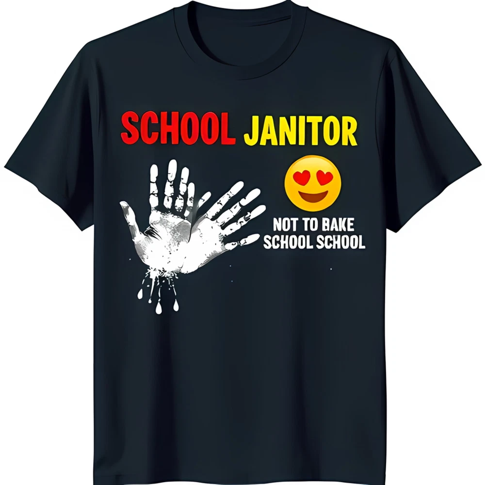 Funny School Janitor T-Shirt with & Handprint Graphic Dark Blue