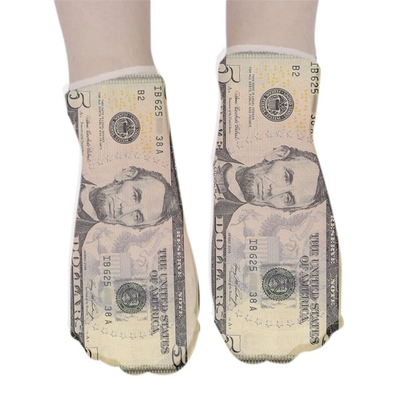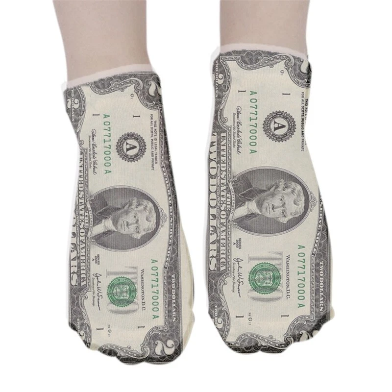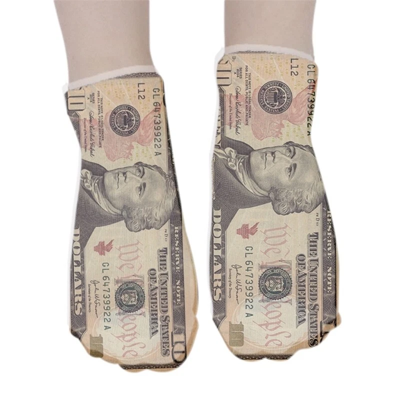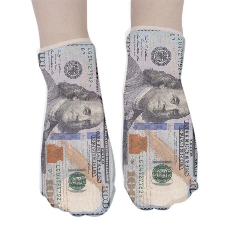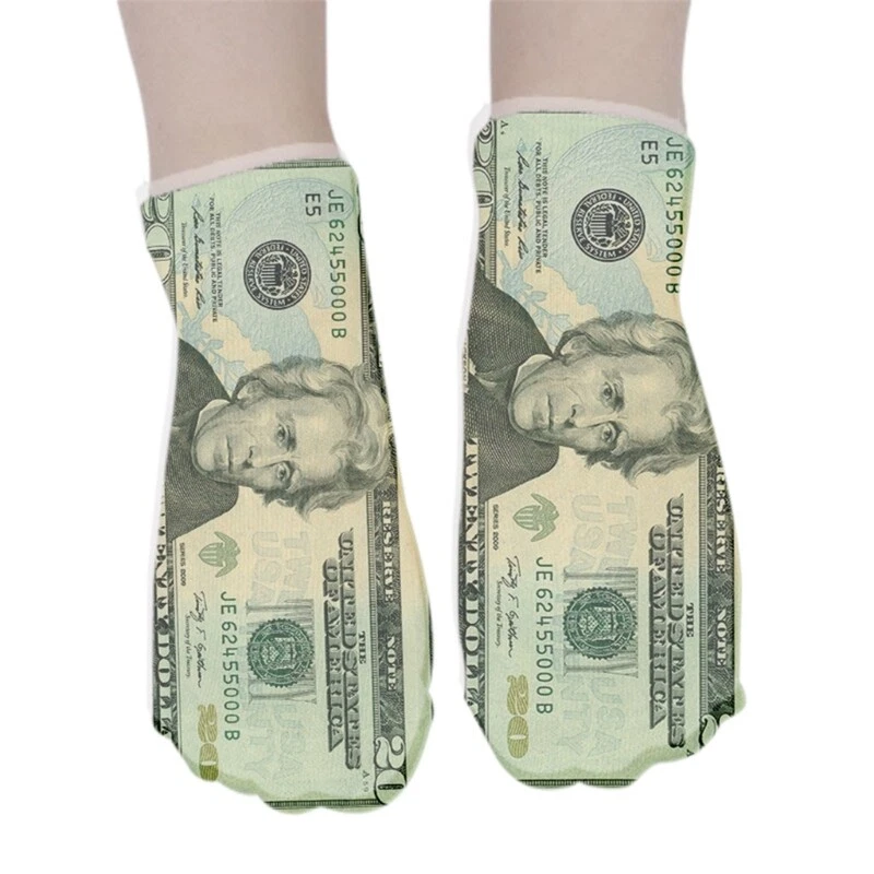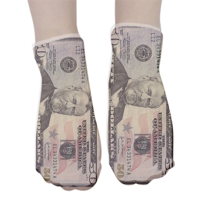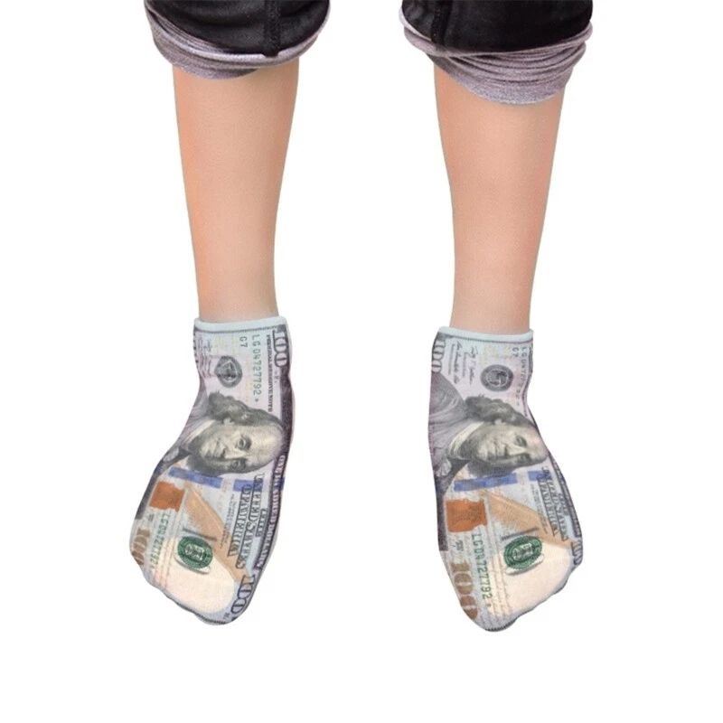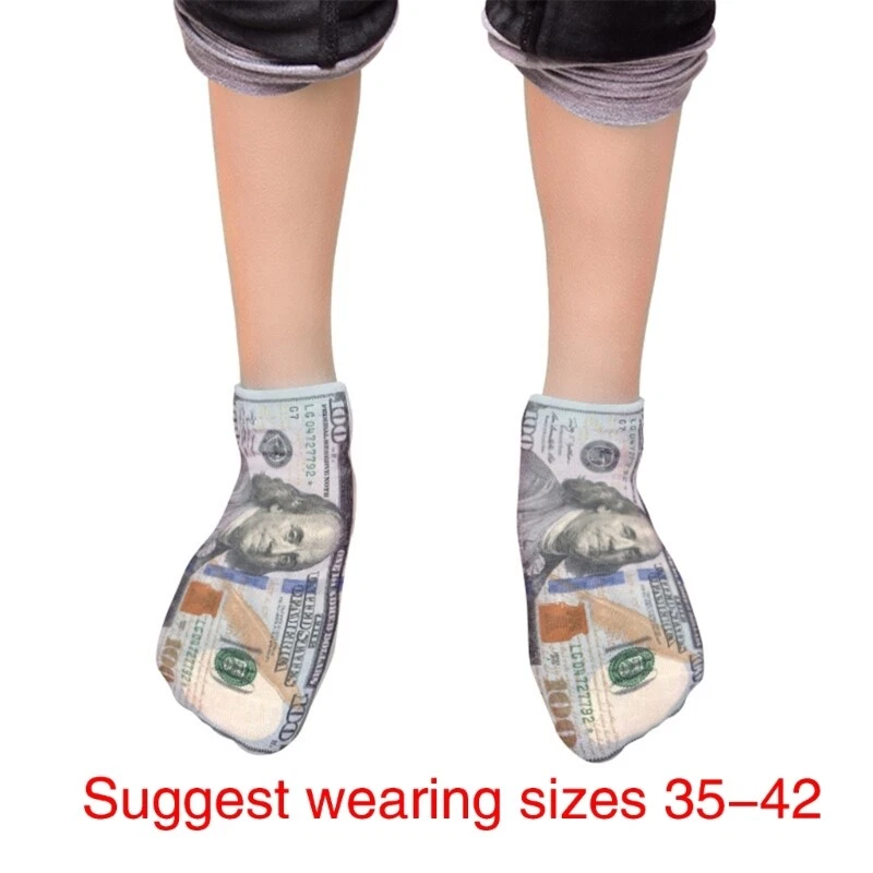 Features: Brand new and high quality These socks feature unique 3D digital print technology, bringing realistic dollar bill pattern to life and catching everyone's attention. Crafted from quality polyester fiber, these socks offer excellent breathability and maintain their shape even after multiple washes. Suitable for both mens and women, these socks is great for fashion forward individuals who seek fashion and distinctive socks. Whether its for everyday wear / special event, these socks add a touch of personality and enhances your overall Show your fashion of fashion with these eye catching socks that boast realistic dollar bill print, make a statement wherever you go. Specifications: Component: Polyester Recommended Foot Size: 35-42 Optional Color: Color1,Color2,Color3,Color4,Color5,Color6,Color7 Optional A Single Side Print, Double Sided Print Quantity: pair(2pcs) Package Includes: pair(2pcs) Socks note: 1cm=10mm=0.39inch No retail package. Please allow 1-3cm error due to manual measurement. please sure you not mind before you bid. Due to difference between different monitors, the picture may not reflect the actual color.