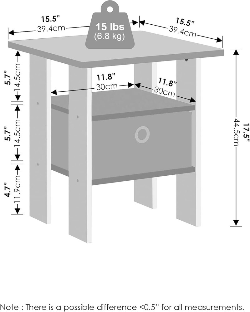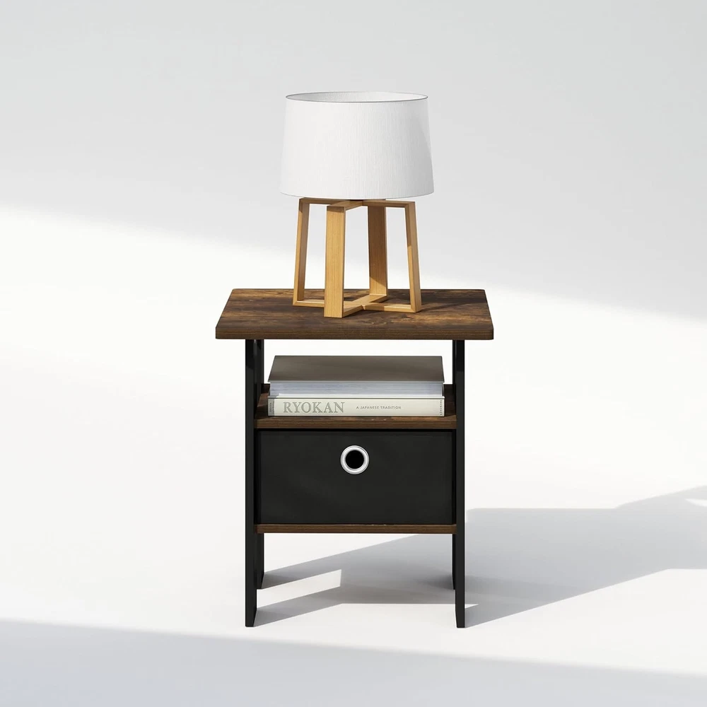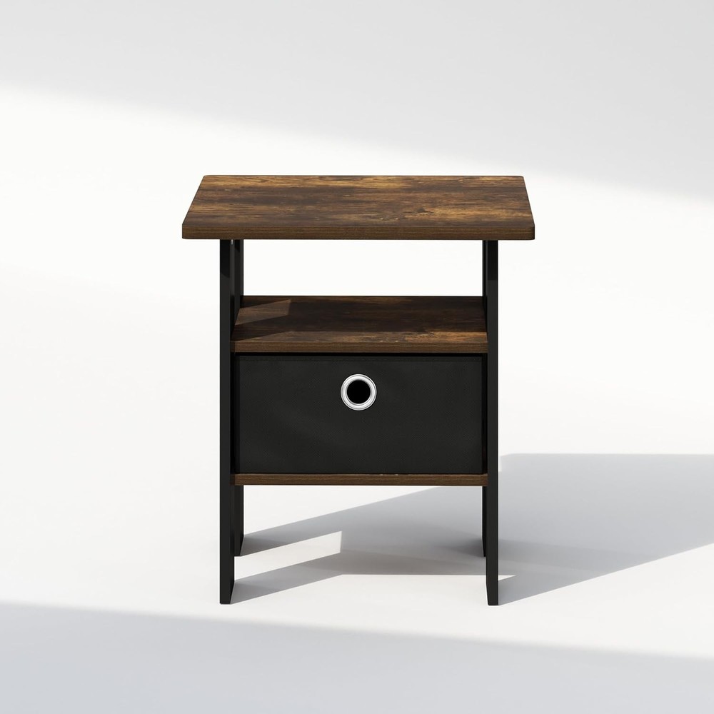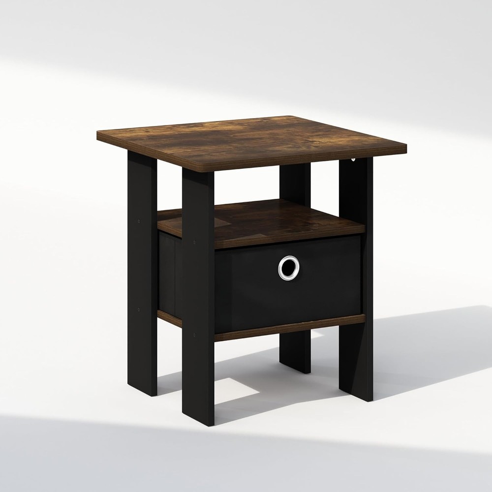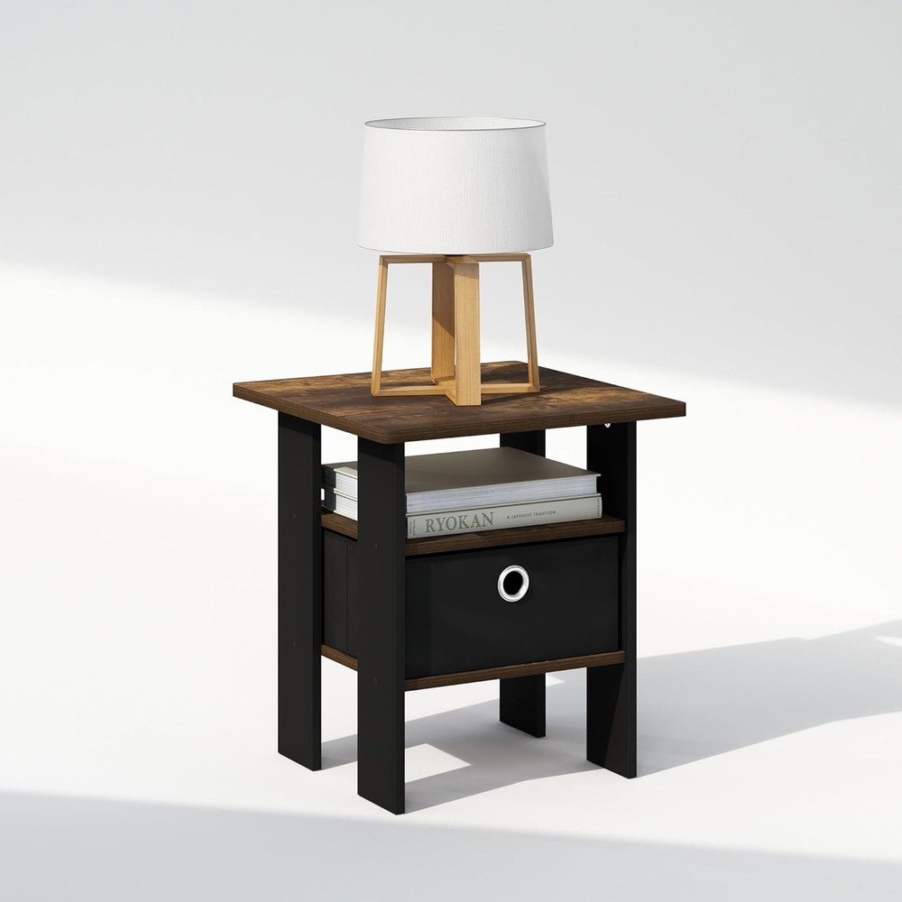 Furinno Tidur Bedside Table Nightstand with Bin Drawer, Amber Pine/Black Product Details Brand: Furinno Product Dimensions: 16"D x 16"W x 18"H Maximum Weight Recommendation: 15 Pounds Color: Amber Pine/Black Product Care Instructions: Wipe with Dry Cloth, Avoid using harsh chemicals Item WeightFrame Material: 11 PoundsEngineered Wood Top Material TypeShape: Engineered WoodRectangular This End table versatile addition to any room. Its compact size ensures it fits perfectly in small spaces or home offices without overwhelming the area. Features a bin drawer that provides ample space for keeping essential items like notebooks, pens, and small gadgets organized and within easy reach. The drawer’s smooth mechanism ensures effortless opening and closing. Designed with rounded corners to prevent injuries, this desk is a safe choice for busy household areas. Manufactured from high-quality durable composite wood, CARB-compliant composite wood carrying the Programme for the Endorsement of Forest Certification (PEFC). Product Dimensions: 16 (D) x 16 (W) x 18 (H) inches The Furinno Tidur Nightstand series offers a blend of modern design and practical functionality, perfect for enhancing any bedroom decor. These nightstands feature a sleek, minimalist aesthetic with clean lines and a compact footprint, making them ideal for small spaces. Each piece provides ample storage with easy-access drawers, ensuring your essentials are always within reach. The Furinno Tidur series brings simplicity and elegance to your bedroom with affordability and style in mind.A simple attitude toward lifestyle is reflected directly in the design of Furinno Furniture, creating a trend of simple nature. The Nightstand is made of CARB-grade composite wood tested for durability and sturdiness. Assembly is easy with provided step-by-step instructions. Care instructions: wipe clean with a clean damped cloth. Avoid using harsh chemicals. Pictures are for illustration purposes. All decor items are not included in this offer. The product is entitled to a 1-year warranty against manufacturer defects. Fits Space, Fits Budget.
