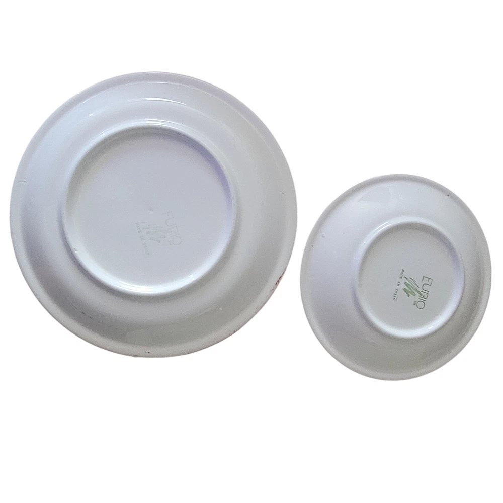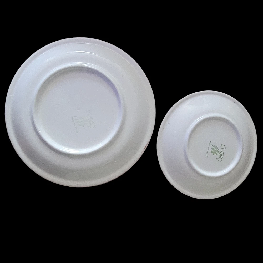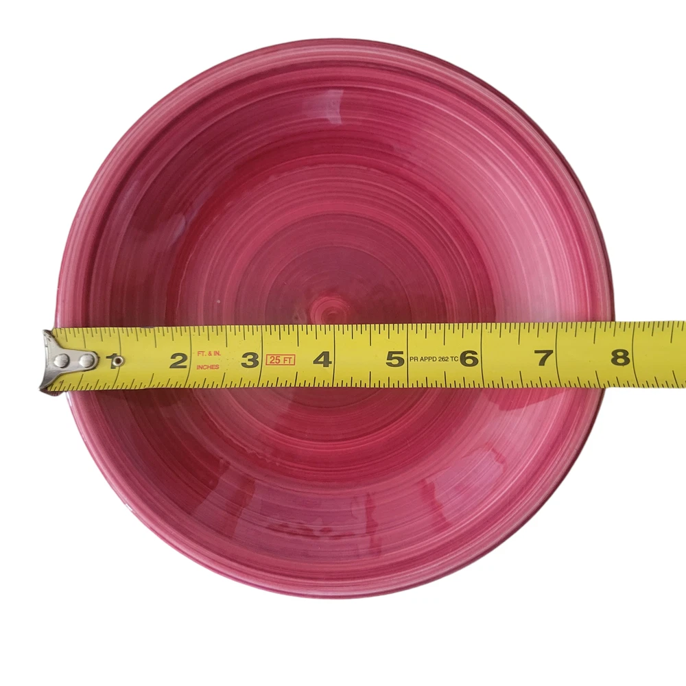 Furio Red Swirl Plates RARE Hard to find Made in Italy Cranberry Red color on top White on the bottom of the plate. Hallmark Lunch plate is 7 3/4 inches Dinner Plate is 10 inches The plates are in very good condition with no chips, cracks or crazing. As a pre-owned item there may be slight amount of wear or utensil marks. They stored in a smoke free area