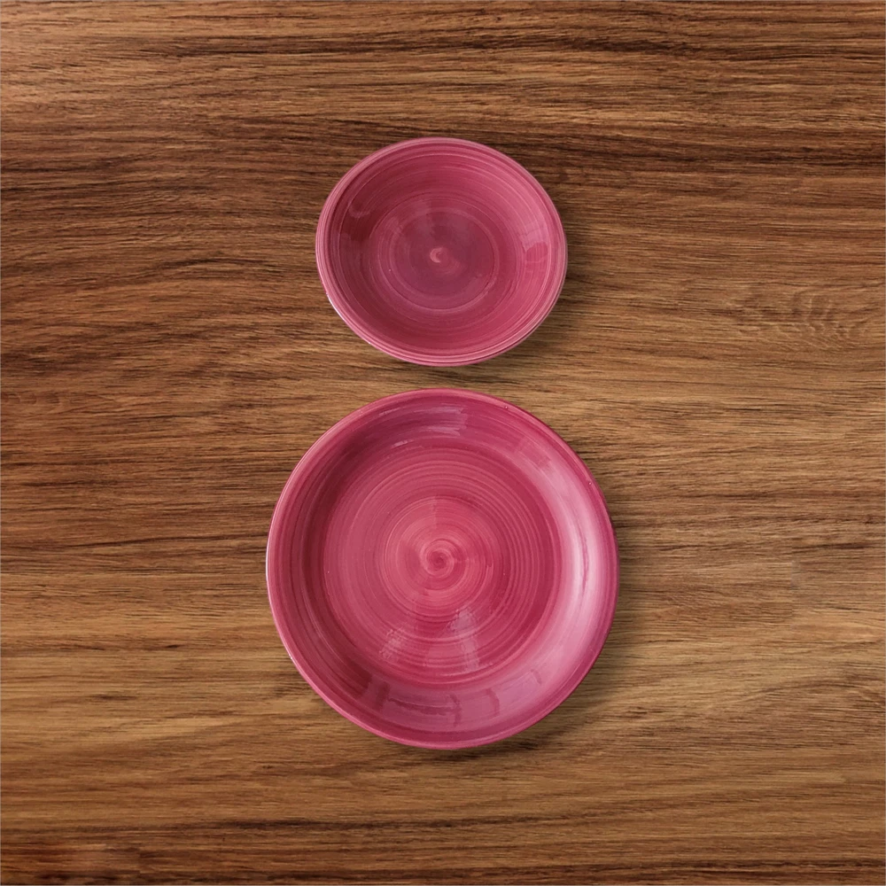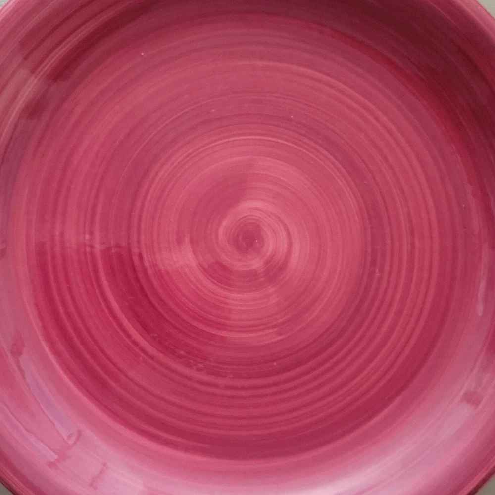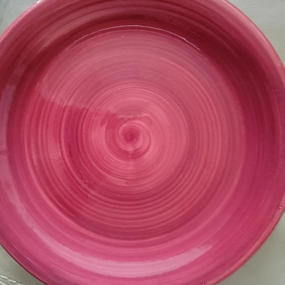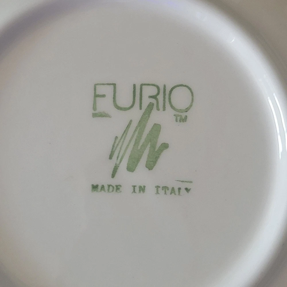 Furio Red Swirl Plates RARE Hard to find Made in Italy Cranberry Red color on top White on the bottom of the plate. Hallmark Lunch plate is 7 3/4 inches Dinner Plate is 10 inches The plates are in very good condition with no chips, cracks or crazing. As a pre-owned item there may be slight amount of wear or utensil marks. They stored in a smoke free area