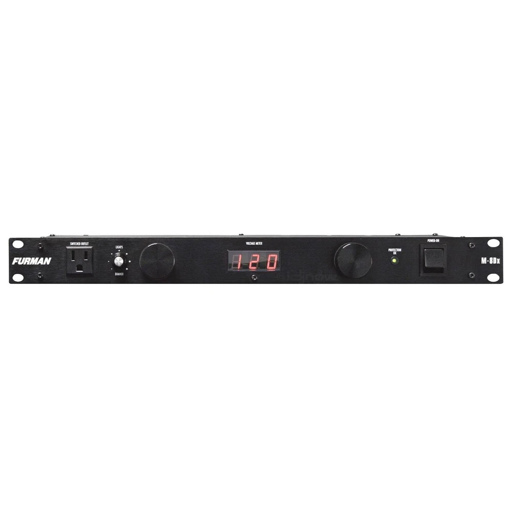 Install an M-8Dx into the top slot of your rack, and the eight switched outlets in the rear panel will power up and protect all your equipment up to a 15-amp load. Illuminate your rack with two retractable, front panel lights. Monitor voltage with the digital meter display. A Merit Series Power Conditioner is the perfect low-cost AC power solution for any rack mount system. The M-8Dx features two slide out, swiveling light fixtures to provide discreet illumination of your equipment on stages, in studios, and in other dark places. A dimmer knob lets you adjust the lamp brightness to just the right level.The M-8Dx also features a bright red, three-digit LED voltmeter that displays incoming voltage. Furman M-8DX Power Conditioner Features: Noise Filtration: AC noise filtering to reduce radio frequency and electromagnetic interference (RFI/EMI.) Surge Protection: Spike & surge protection ensures equipment stays safe and your power stays clean. 9 Total Outlets: 8 rear panel outlets and 1 front panel convenience outlet. Digital Voltmeter: Digital voltmeter display incoming line voltage. 15 Amp Rating: 15 amp rating, with circuit breaker. "Protection OK" Indicator: Front panel indicator LED lets you know that your equipment is being protected. Wall Wart Spacing Indicator: Rear outlets have been spaced to accommodate even the bulkiest of wall warts and adapters. Front Panel Pull-out Lights: Two retractable incandescent light fixtures with dimmer control for convenient rack illumination. Instrument Rigs You've got a rack for your effects, preamps, tuner...You're going to plug that into the wall? One big spike and your rig is up in smoke. Furman's standard level surge/spike protection defends your gear from the spikes and surges that are so common at gigs and practice spots. With Furman's standard level RFI/EMI filtration, you'll get a quieter tone without pops, crackles, and the local radio station coming out of your amp. Plus, dual pull-out lamps let you see your rack without turning the house lights on, while the digital voltmeter lets you monitor incoming voltage. Recording Can't track down where that noise is coming from? Your mix sounding flat? With Furman's standard level RFI/EMI filtration you'll lower the noise floor caused by the dirty AC power coming into your console or DAW. Furman's standard level surge and spike protection keeps your sensitive digital equipment from acting funny or burning up due to everyday spikes and surges. You can even monitor voltage changes, as the digital meter allows you to keep an eye on the incoming line voltage. With a 15A capacity and nine total outlets, it's enough to power your whole home studio. DJ Equipment Bars, clubs and other event venues have some of the worst power out there - from air compressors turning on and off to light shows pulling current loads up and down, the AC power can be a strain on the circuits in your rig. Furman's standard level protection and filtration keeps the bad stuff out. The dual pull-out front panel lights also let you discreetly see your board and gear without distracting from the show on the dance floor. Pro Audio When you're out there gigging, you never know what kind of power you're going to get. The wear and tear on mobile rigs eventually takes it toll - that's why it's smart to plug into Furman's standard level protection and RFI/EMI filtration. It keeps your equipment safe and sounding clean. It keeps your equipment safe and sounding clean, while the digital voltmeter lets you monitor incoming voltage. Whether you're setting up a show at the local club or powering up the church band for their next service, make sure you give them power they can trust. Each M-8DX Retail Box Includes: (1) Furman M-8DX 15A Standard Power Conditioner with Lights and Digital Meter