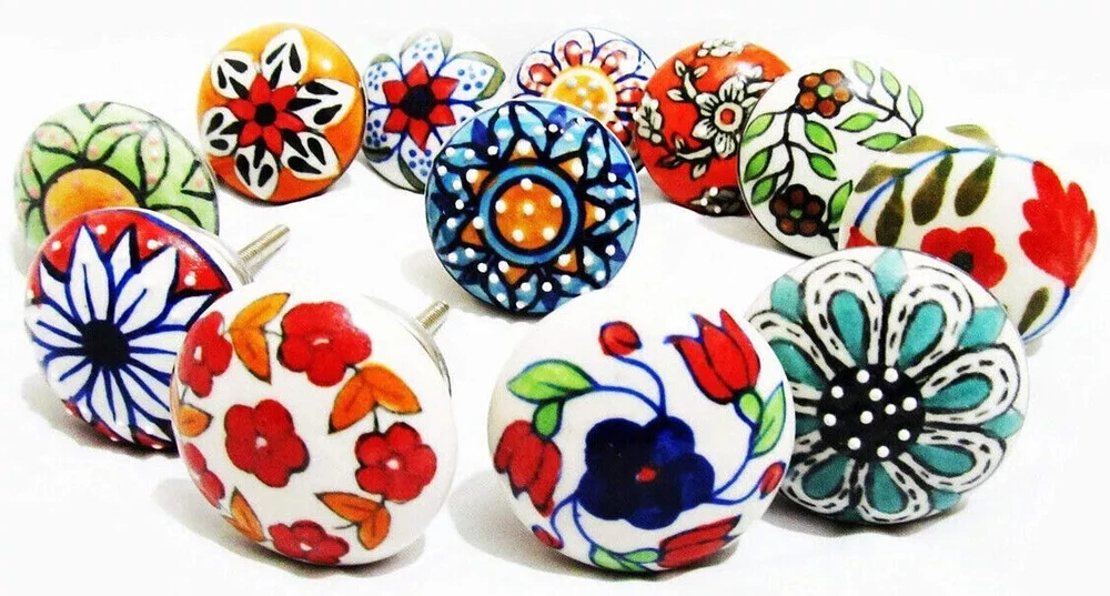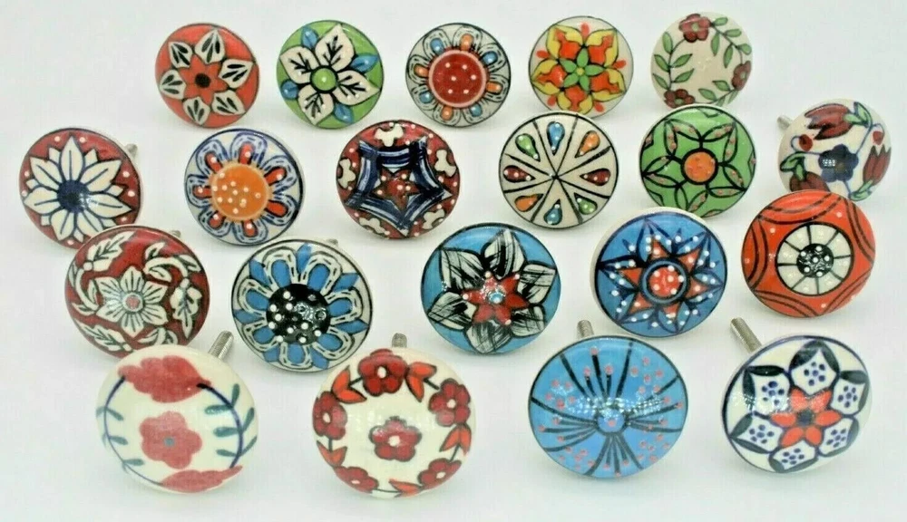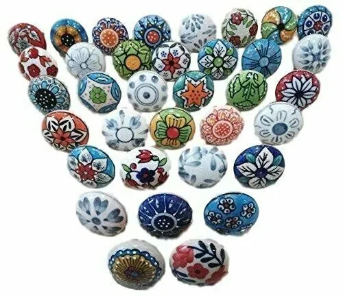 WELCOME TO JAIPUR ART Ceramic Door Knobs Kitchen Furniture Cabinet Cupboard Drawer Handle Multi Color !! Item Specification!! Material: Ceramic Color: Multi Color And Assorted Design Size: Length of knob including screw : 2.6 inch Diameter of knob : 1.7 inch Color: multi Color and Assorted Designs Shape: Round Theme: Art. Country/ Region of Manufacture: India New: A brand-new, unused and undamaged item that is fully operational and functions as intended. Usage: Ceramic Door Knobs Kitchen Furniture Cabinet Cupboard Drawer Handle Multi Color ~~ Shipping Policy~~ 1. We Ship Within 2-3 Business Days After Receiving Order/ Payment. 2. Country's Custom Duties, Taxes & Charges are to be paid by buyer if there are any. ~~ Return Policy ~~ 1. Returns Accepted From Buyers Within 30 Days of Delivery. 2. Shipping Charges will be made by Buyers When Return. ~~ Our Products~~ We are also selling Tapestry, Curtains, Pillows, Bedshhet, Duvet Cover, Kantha, Women Nighty, and Many Home decor Items and many more under Home Decor Category. Our aim is delivering 100% customer satisfaction. We ship the product after performing the high quality check. After receiving products please move to give us positive feedback. Your feedback is valuable for us in next selling. In case of any issue please give one chance to us. And don't go directly for negative feedback. We will delivers you 100 % solution as possible and resolve your problem. ~~ Thank You. Have A Nice Day. ~~