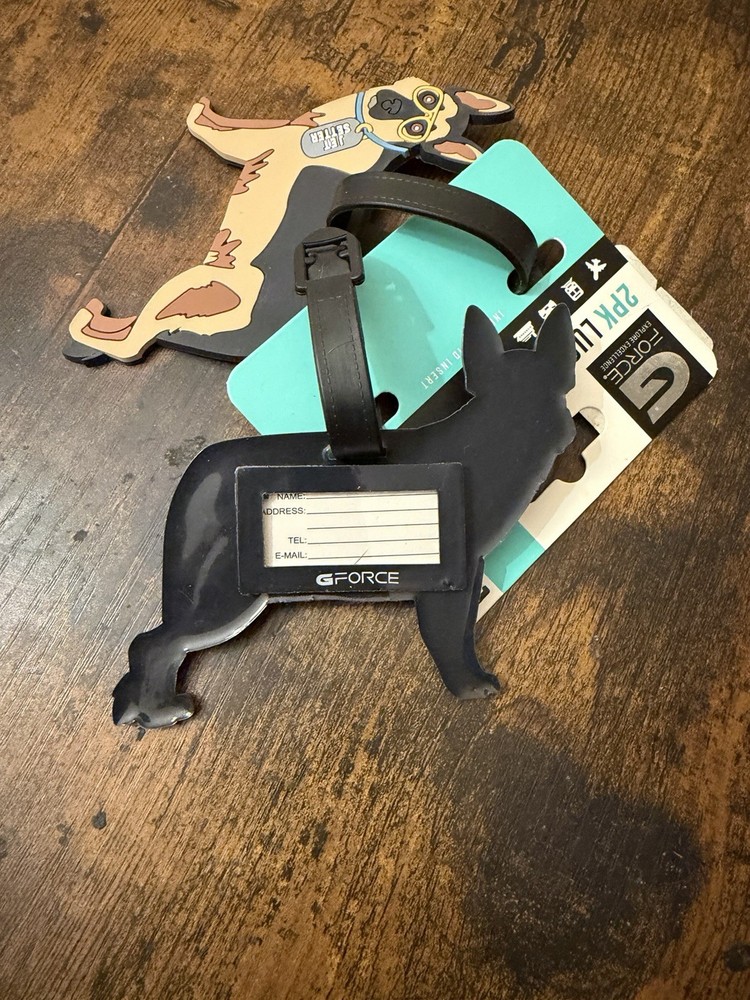G Force 2PK German Shepherd Dog Shaped Plastic Luggage Tags