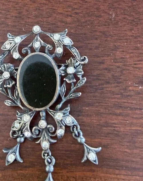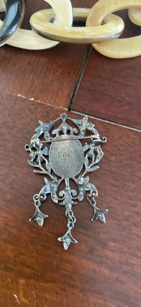 Antique Victorian Silver Pietra Dura Floral Filligree Brooch Pendant 800 Silver