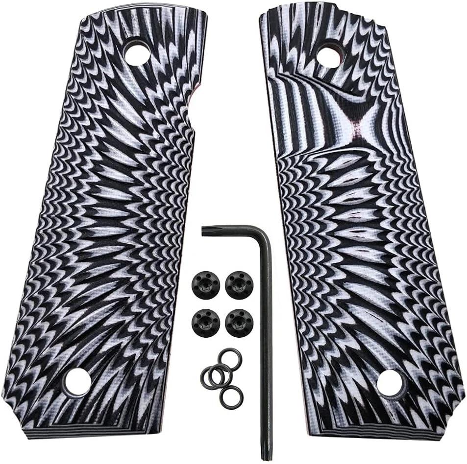 G10 Grips for 1911 Full Size - Sunburst Texture, Ambi Safety Cut - Black Screws Included ‹ › ‹ › ‹ › ‹ › ‹ › ‹ › ‹ › ‹ › ‹ › ‹ › ‹ › G10 Grips for 1911 Full Size -Sunburst Texture, Ambi Safety Cut -Black Screws Included Features: CNC machined from non-slippery G10 material. Fits most 1911 Full Size (Government) models on the market. Measures 3 1/16" between two center holes and has a thickness of 1/4". Sunburst texture for an aggressive grip. Includes 4 screws, 4 o-rings, and T10 Torx keys. Benefits: Provides a secure and comfortable grip. Compatible with a wide range of 1911 Full Size models. Perfect fit with precise measurements. Enhanced grip texture for improved control. Includes all necessary screws and tools for easy installation. Why choose our G10 Grips for 1911 Full Size? Upgrade your 1911 Full Size pistol with our high-quality G10 Grips. CNC machined from non-slippery G10 material, these grips provide a secure and comfortable grip for improved shooting performance. With a sunburst texture, they offer an aggressive grip that ensures maximum control and accuracy. Our grips are designed to fit most 1911 Full Size models on the market, and they come with all the necessary screws and tools for easy installation. Don't settle for inferior grips - choose our G10 Grips for 1911 Full Size and experience the difference in performance and quality. Order now and take your shooting experience to the next level! Shipping Free & Fast Shipping - We offer free shipping to most of the USA with a normal delivery time of 3-7 days. However, due to the current situation, additional delivery time (up to 3 weeks) may be required for some items. Alternative Carriers - We may use alternative carriers (e.g. USPS, FedEx, UPS, etc.) to ensure your package arrives safely and on time. Due to the use of multiple carriers, we are unable to provide a tracking number automatically. Handling Time - Orders are processed and shipped within 1-2 business days of receiving cleared payment. Shipping Restrictions - Shipping to Alaska, Hawaii, Puerto Rico, Guam, and other US territories may incur shipping charges or delivery restrictions. Please contact us before ordering, or your order can be refunded/cancelled. State Restrictions - There may be restrictions based on your state of purchase. For example, certain items may not be shipped to California due to state regulations. Contact for Tracking Updates - If you require tracking updates or have any concerns about the delivery of your order, please feel free to contact us, and we will be happy to assist you. Return 30-Day Hassle-Free Returns - We want you to be completely satisfied with your purchase. If you are not, you can return the item within 30 days of receiving it for a full refund or exchange. Easy Return Process - To start a return, simply contact us and we will provide you with a prepaid return shipping label and detailed instructions. Restocking Fee - There are no restocking fees for returns. However, the buyer is responsible for return shipping costs if the return is not due to a seller's error. Refund Processing Time - Refunds will be processed within 5 business days of receiving the returned item in its original condition. Payment We accept all major credit cards, PayPal, and Apple Pay for your convenience. Your payment information is secure and encrypted to ensure a safe and seamless transaction. Please complete your payment within 3 days of purchase to avoid any delays in shipping. Feedback Your feedback is extremely important to us. We strive to provide the best products and customer service possible. If you are satisfied with your purchase, please take a moment to leave us a positive review. If you have any concerns or issues with your order, please contact us before leaving negative feedback. We are committed to resolving any problems and ensuring your satisfaction. Contact Us If you have any questions or concerns, please feel free to reach out to our customer support team. You can contact us through the eBay messaging system. We are available Monday to Friday, 9:00 am to 5:00 pm EST, and we will do our best to respond to your inquiry within 24 hours. Thank you for supporting our small family business!