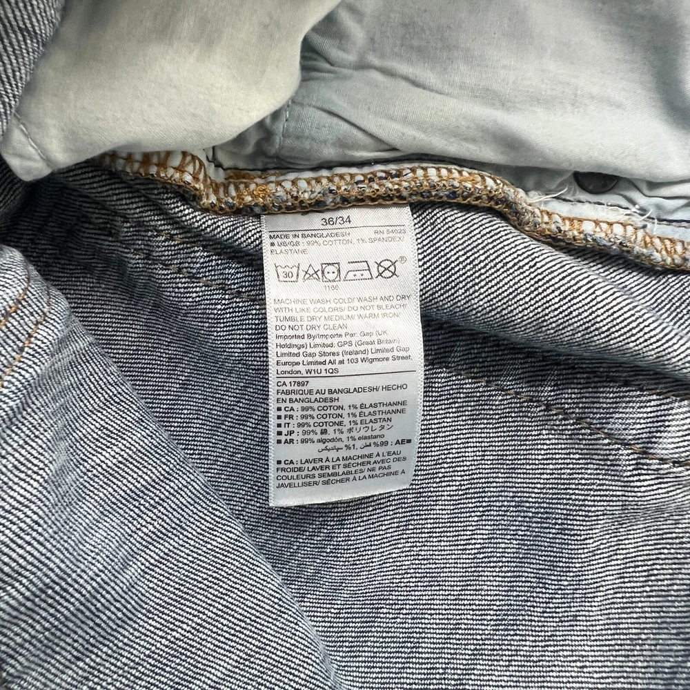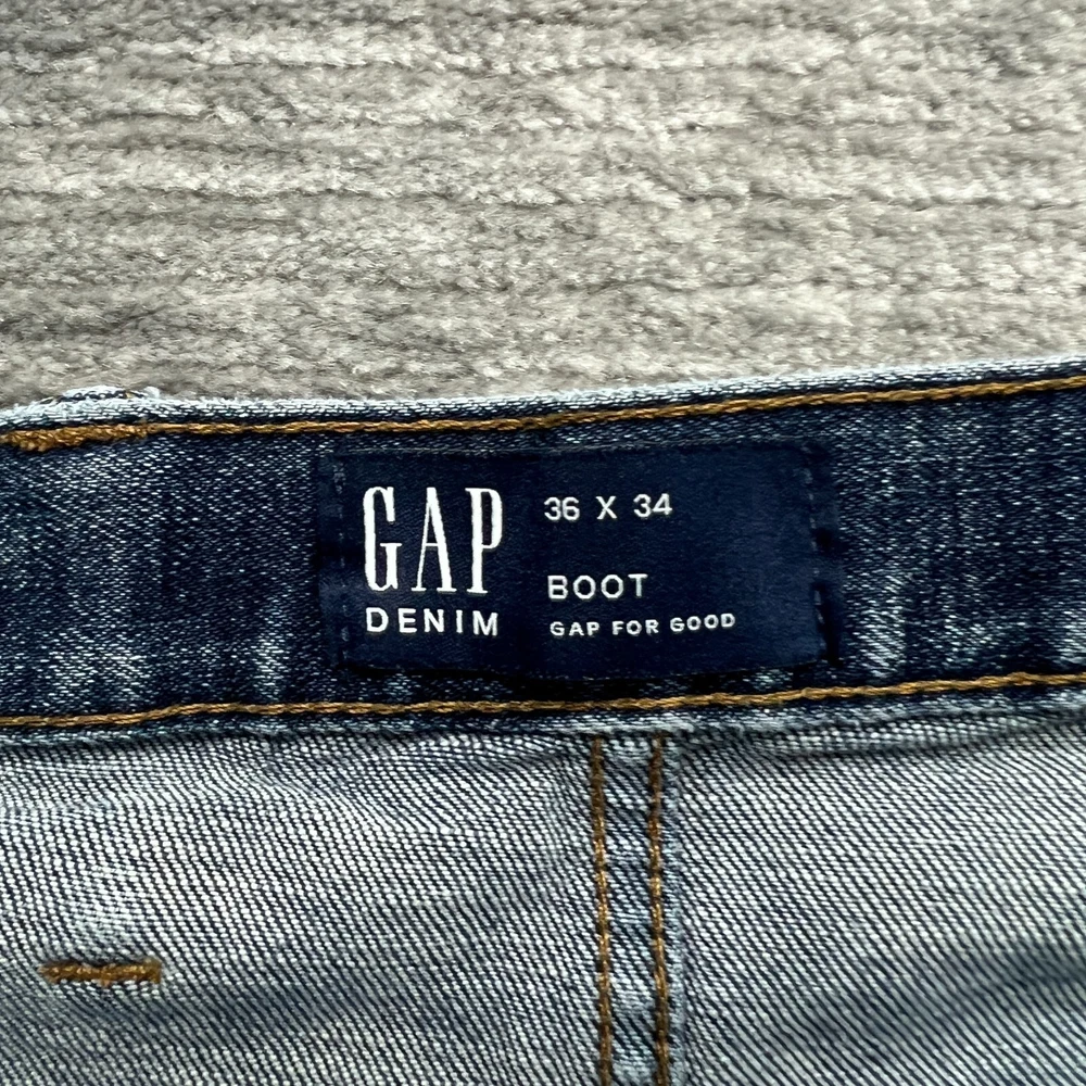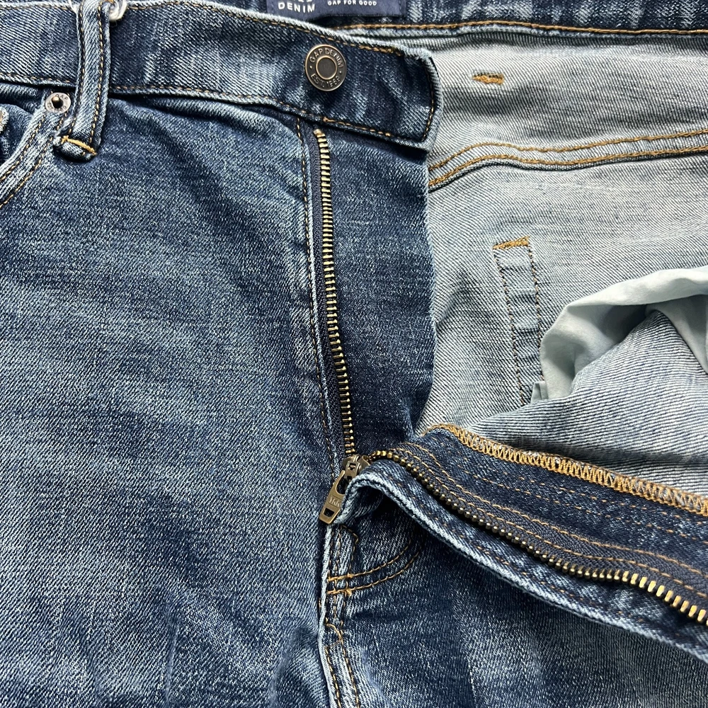 GAP Jeans Size 36x34 Mens Slim Medium Wash Blue Denim Please View Photos Closely. Please note, item measurements are approximate and in the photos. Items are carefully inspected and sealed after photos, so we cannot check additional measurements or details for you. All clothing has been cleaned/washed per eBay standards. We store our items in a pet and smoke free environment. We ship daily, and have 30 day returns. Thank you!