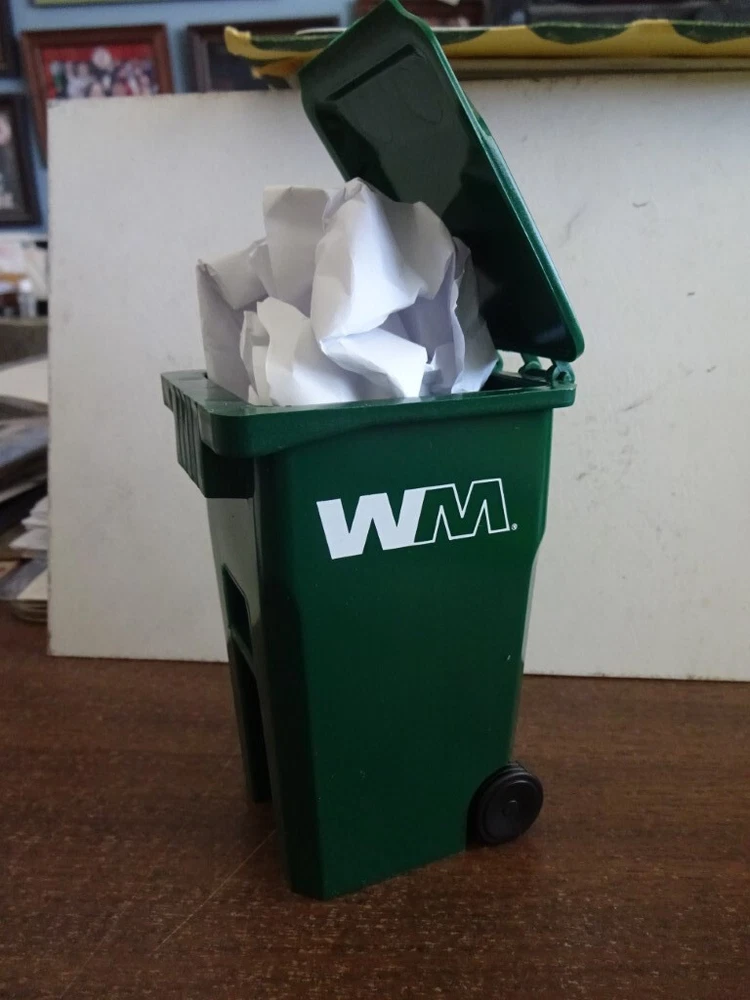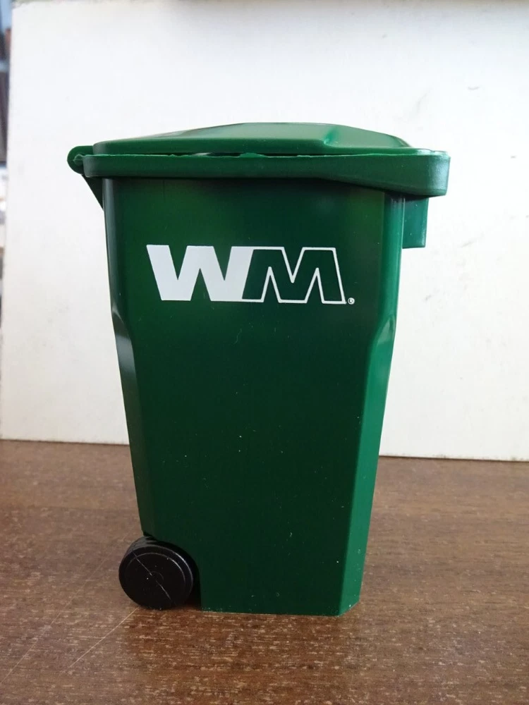 I DO NOT REPLY TO ANY OFFERS. GREEN WASTE MANAGEMENT MINI REPLICA GARBAGE CAN AND IT STANDS 5" TALL WHEN THE LID IS CLOSED. GREAT LOOKING ON YOUR DESK TO HOLD YOUR PENS AND PENCILS. MADE OF PLASTIC. REMEMBER THIS IS NOT THE BIG TRASH CAN YOU WHEEL OUT ON GARBAGE COLLECTION DAY. IT'S THE MINI REPLICA. TAKE A LOOK AT ALL THE PHOTOS AS THEY ARE PART OF THE DESCRIPTION & ASK QUESTIONS BEFORE BIDDING. THANKS FOR LOOKING !! USA SHIPPING ONLY. I DO NOT REPLY TO ANY OFFERS. $FREE FIRST CLASS MAIL SHIPPING WITH TRACKING FOR ONE OR MORE. PAYMENT BY PAYPAL NO LATER THAN 5 DAYS AFTER AUCTION ENDS I WILL COMBINE SHIPPING ON MULTIPLE ITEMS, WAIT FOR ME TO SEND AN INVOICE I SHIP ONLY TO THE USA I SHIP ON MONDAY THRU SATURDAY ASK ALL QUESTIONS BEFORE BIDDING