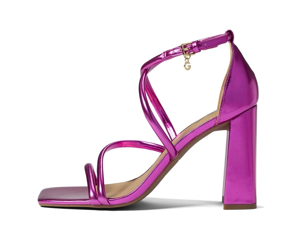 PRODUCT DESCRIPTION G by GUESS is now GBG Los Angeles. GBG Los Angeles footwear provides the same fashion-forward, trendy styles you know and love. Don the stunning pair of GBG Los Angeles™ Chloin Heels and add some glitz and glamor to your style. Man-made upper, lining, and insole. Adjustable buckle strap closure on the ankle. Square open toe. Shaved block heel. Man-made outsole. Product measurements were taken using size 8.5, width M. Please note that measurements may vary by size. Weight of footwear is based on a single item, not a pair. Measurements: Heel Height: 4 in Weight: 10 oz