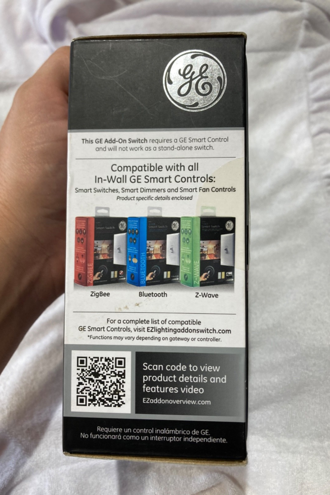 GE #12728 Add-On Switch Toggle - for any GE Smart Control **Requires an in-wall GE Smart Control (sold separately) Compatible with IRIS Requires in-wall installation with hard-wired connections. 120VAC Works with: -LED Bulbs -CFL Bulbs -Halogen and Incandescent Bulbs -Fans -Pumps