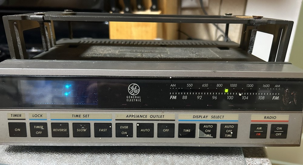 This is a General Electric 7-4220B AM/FM Kitchen Companion Radio Alarm Clock in Gray. It features a sleek design and is perfect for use in the kitchen or any room in the house. The clock radio is made by GE and is part of their GE product line. It has an unknown country/region of manufacture and comes in a stylish gray color. The model number is 7-4220B and it has a variety of features including AM/FM radio and an alarm clock.