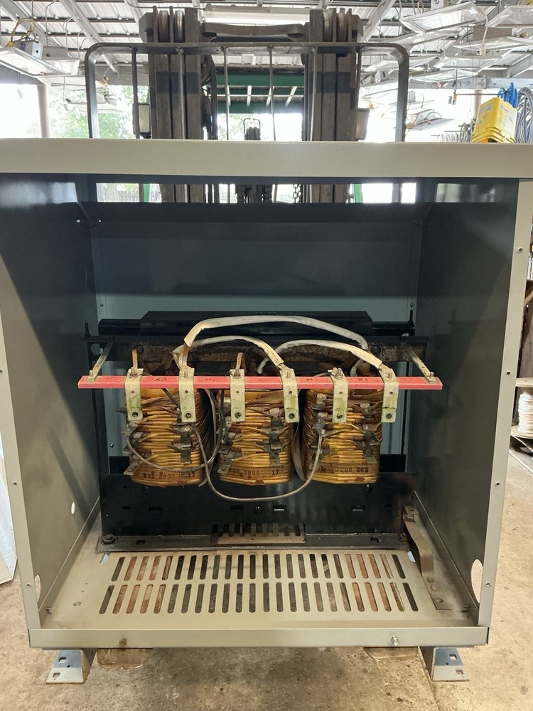 General Electric GE Transformer Dry Type QL 75KVA 480 HV 240 LV Delta Delta. DATA TAG UNREADABLE. Was in good working condition when removed. Refurbished paint. Tested. See photos. You will receive exact item in photos. Local pick up only. Pensacola, Fl. Buyer can also arrange to have a freight line pick it up, We can load with forklift. Will come banded to a pallet. Buyer must provide pick up code before the item can be released to a carrier. > Shipping Weight with pallet & banding: estimated 600lbs H 54" x W 48" x D 48"