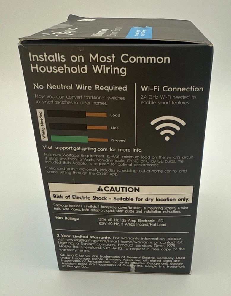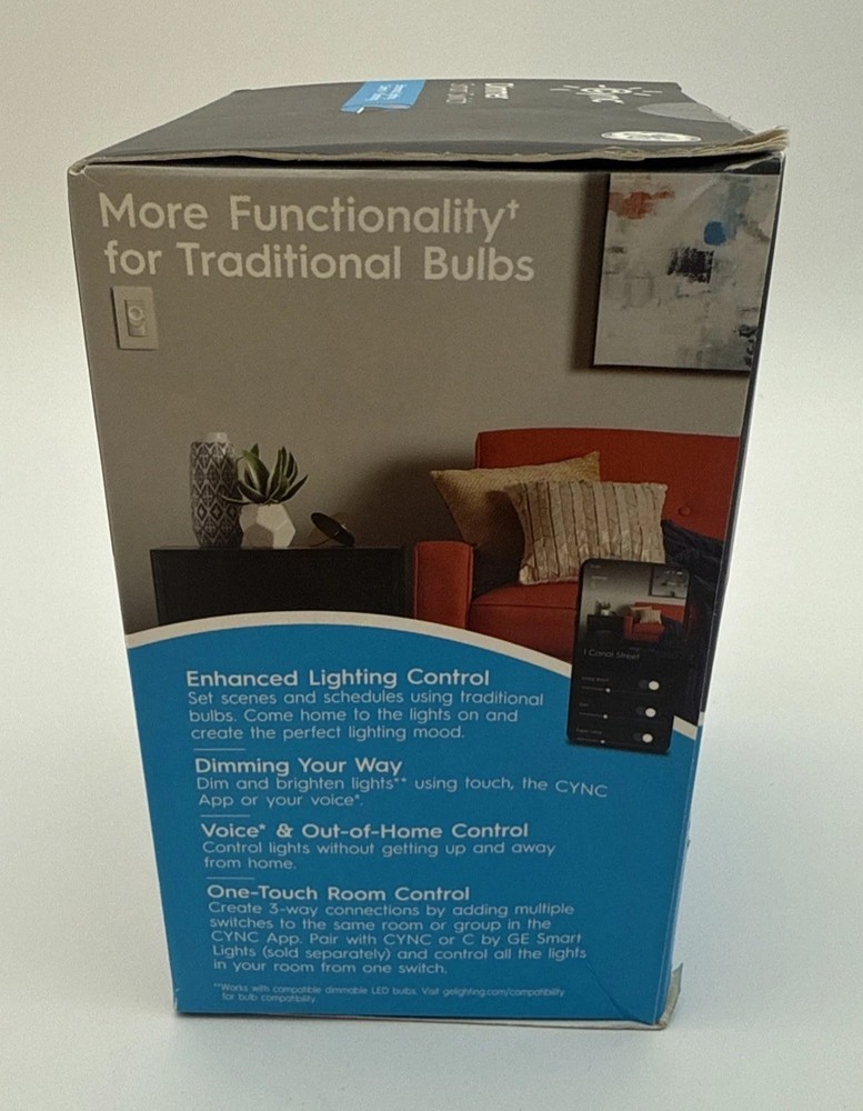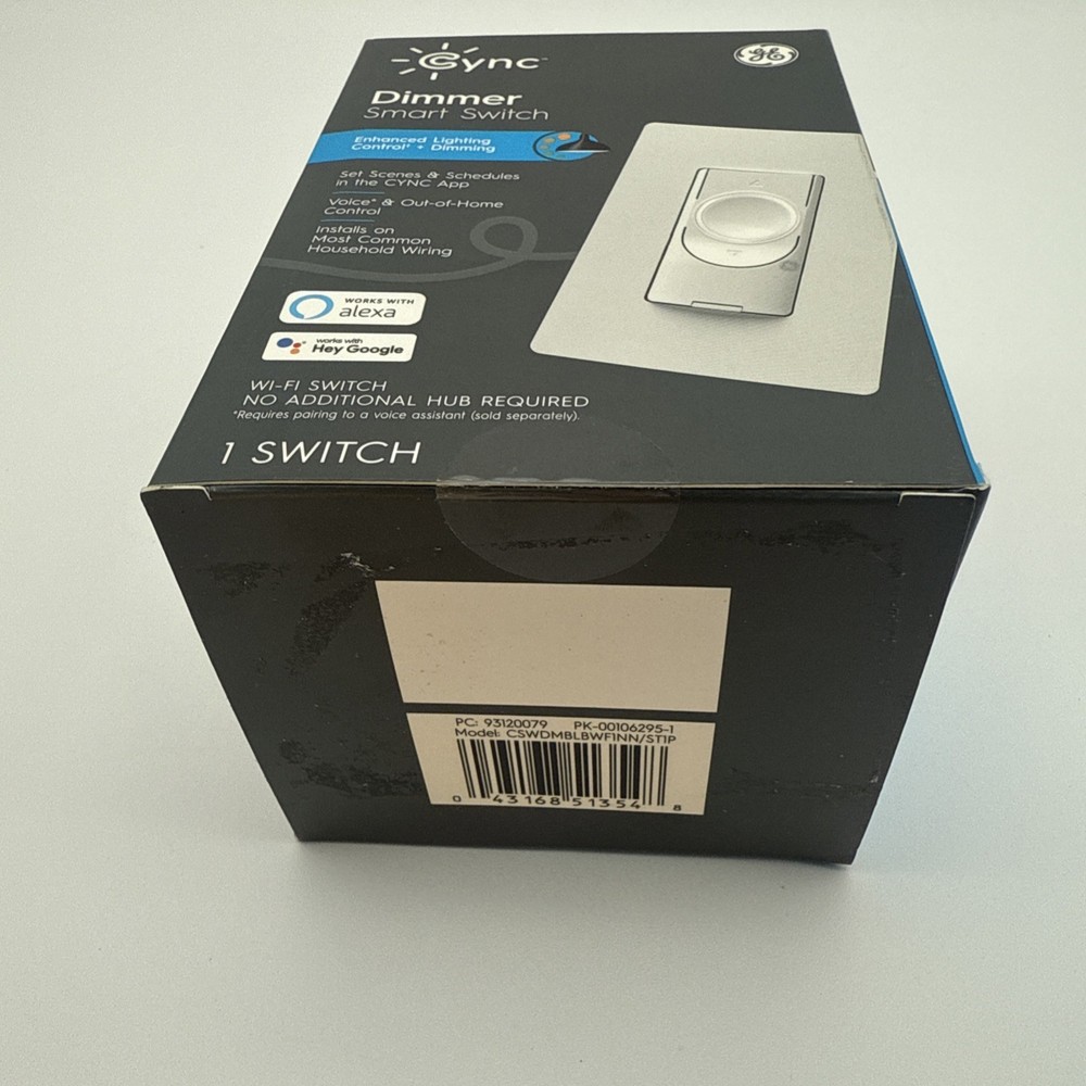 No neutral wire Required. The GE Cync Dimmer Smart Switch is a modern and convenient addition to any home's electrical setup. This smart switch is compatible with Alexa and Google Home, allowing for easy voice control of your lights. With a traditional white color and a sleek design, this dimmer switch is perfect for any room in the house. The switch operation method allows for adjustable brightness levels, while the app control feature adds an extra layer of convenience. Easy to install and use, this GE Cync Dimmer Smart Switch is a must-have for any home looking to upgrade its electrical system.