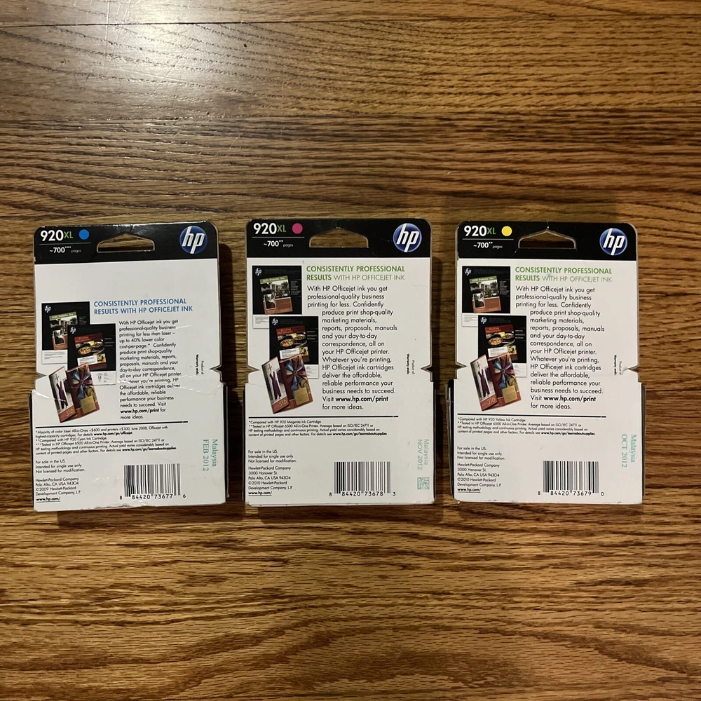 Ships Fast! This genuine 3-pack HP 920XL ink cartridge set is compatible with HP Officejet printers and boasts a high yield capacity. The set includes cyan, yellow, and magenta cartridges, as well as a black cartridge, all of which are sealed in their original box. The cartridges are compatible with HP Officejet 6500, 6500A, and 6000 models, and are perfect for all your printing needs. The set is an original HP product, ensuring high quality and longevity.
