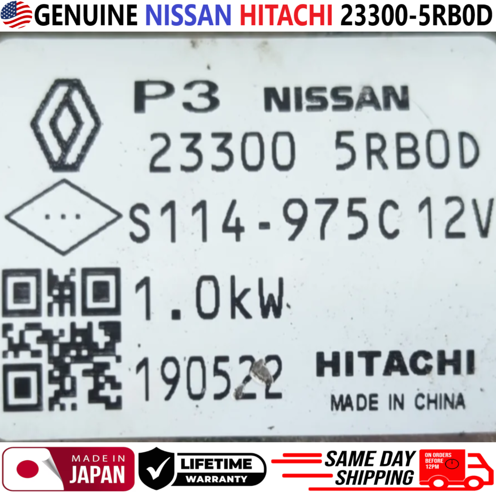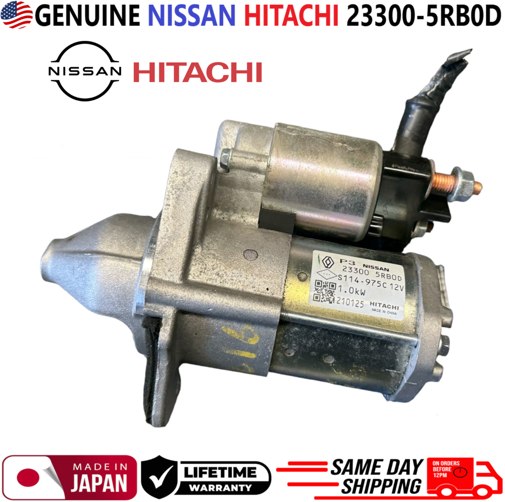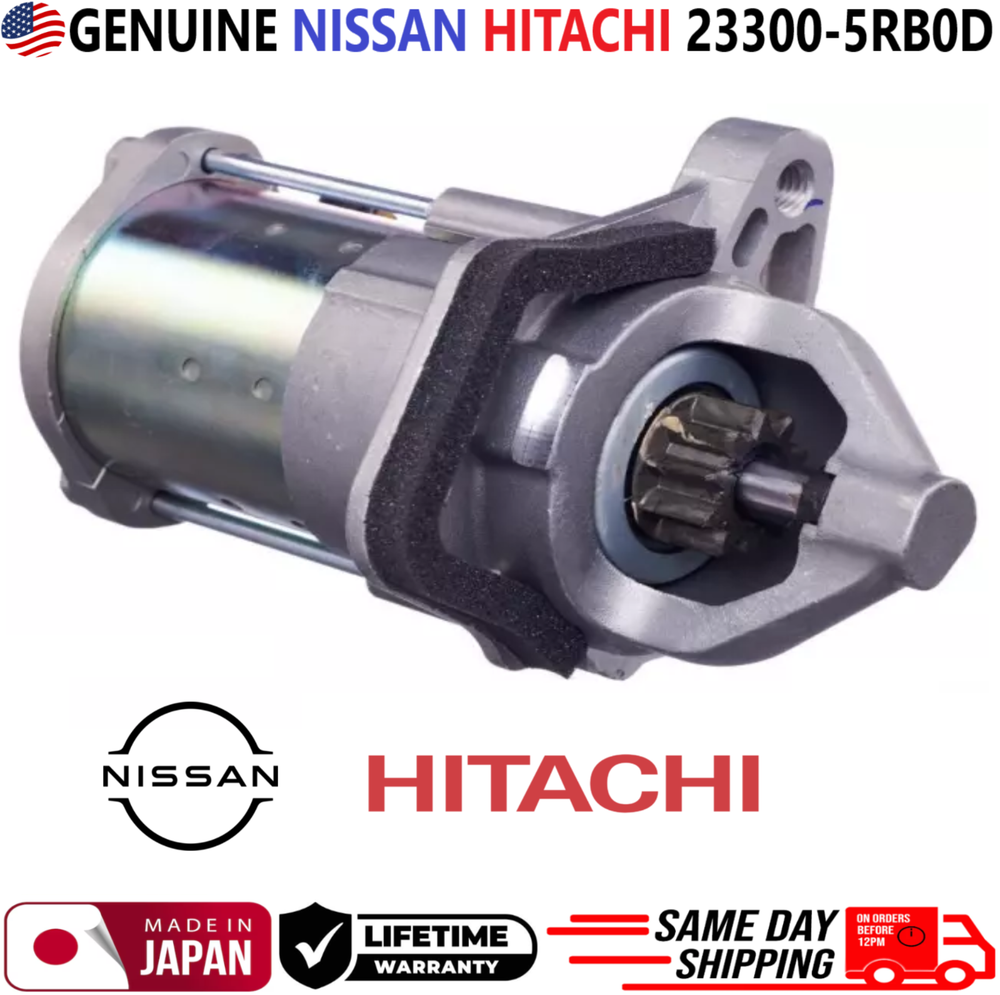 REMANUFACTURED GENUINE NISSAN HITACHI Engine Starter Motor For 2018-2025 Nissan Versa Nissan Kicks 1.6L I4 ***These Parts are NOT aftermarket*** ***FREE SAME DAY SHIPPING & LIFETIME WARRANTY*** ***MADE IN JAPAN*** Manufacturer Part Number # 23300-5RB0D, 233005RB0D, 23300 5RB0D, 23300-5RBOD, 23300 5RBOD, 233005RBOD Please use our compatibility chart or verify with your part number to see if these parts a re right for your car!!! Compatible Vehicles, Engine Starter Motor For: > 2018, 2019, 2020, 2021, 2022, 2023, 2024 Nissan Kicks 1.6L I4 > 2020, 2021, 2022, 2023, 2024 Nissan Versa 1.6L I4 PLEASE NOTE: YOU WILL RECEIVE THIS PRODUCT EXACTLY AS SHOWN IN THE PICTURE!!! ALL OF OUR PARTS COME WITH NEW NEW HIGH-QUALITY COMPONENTS SUCH AS O-RINGS, SEALS, GASKETS ETC. INTERNALLY AND EXTERNALLY CLEANED WITH VARIOUS ULTRASONIC TREATMENTS USING THE LATEST EQUIPMENT IN THE INDUSTRY. ALL PARTS ARE CHECKED FOR MAJOR DAMAGES & CRACKS , ALL PARTS ARE TESTED BEFORE SHIPPING. ALL REMANUFACTURED PARTS WERE PREVIOUSLY USED MAY HAVE LIGHT SCRATCHES, FADED COLORS AND SIGNS OF USAGE. HOWEVER, THEY STILL FUNCTION AS IF THEY WERE NEW. Highly Recommended: Before installation, you must lubricate all seals and O-rings!!! We highly recommend any auto part to be installed by a professional mechanic. We are not responsible for any damages caused by improper installation. Shipping: Handling time - 1 business day International, Priority, and Express shipping is also available. Warranty: We provide a LIFETIME WARRANTY for all our products (For Warranty claim please contact us) Returns and refunds: We accept returns within 60 days after receiving the package. All returned items must be unused and in the original packaging.