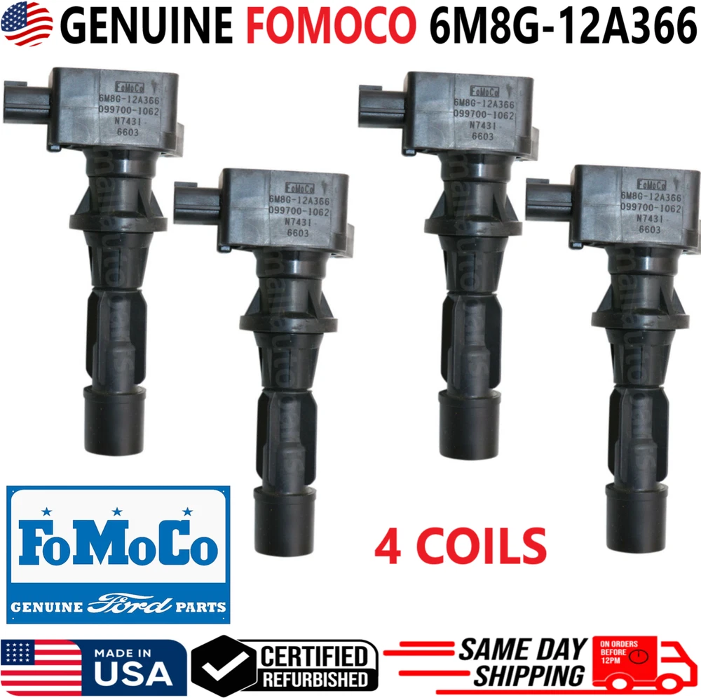 REMANUFACTURED GENUINE FORD FOMOCO Set of 4 Ignition Coils For 2006-2013 Mazda 3 Mazda 6 Mazda CX-7 2.0L I4 2.3L I4 2.5L I4 ***These Parts are NOT aftermarket*** ***FREE SAME DAY SHIPPING & LIFETIME WARRANTY*** ***MADE IN THE USA*** Manufacturer Part Number # 6M8G-12A366, 6M8G12A366 099700-1062, 0997001062 Please use our compatibility chart or verify with your part number to see if these parts are right for your car!!! Compatible Vehicles, Ignition Coils For: > 2006, 2007, 2008, 2009, 2010, 2011, 2012, 2013 Mazda 3 2.0L I4 2.3L I4 2.5L I4 > 2006, 2007, 2008, 2009, 2010, 2011, 2012, 2013 Mazda 6 2.0L I4 2.3L I4 2.5L I4 > 2010, 2011, 2012 Mazda CX-7 2.5L i4 PLEASE NOTE: YOU WILL RECEIVE THIS PRODUCT EXACTLY AS SHOWN IN THE PICTURE!!! ALL OF OUR IGNITION COILS COME WITH NEW NEW HIGH-QUALITY COMPONENTS SUCH AS O-RINGS, SEALS, GASKETS ETC. INTERNALLY AND EXTERNALLY CLEANED WITH VARIOUS ULTRASONIC TREATMENTS USING THE LATEST EQUIPMENT IN THE INDUSTRY. ALL PARTS ARE CHECKED FOR MAJOR DAMAGES & CRACKS, ALL COILS ARE TESTED BEFORE SHIPPING. ALL REMANUFACTURED COILS WERE PREVIOUSLY USED MAY HAVE LIGHT SCRATCHES, FADED COLORS AND SIGNS OF USAGE. HOWEVER, THEY STILL FUNCTION AS IF THEY WERE NEW. Highly Recommended: Before installation, you must lubricate all seals and O-rings!!! We highly recommend any auto part to be installed by a professional mechanic. We are not responsible for any damages caused by improper installation. Shipping: Handling time - 1 business day International, Priority, and Express shipping is also available. Warranty: We provide a LIFETIME WARRANTY for all our products (For Warranty claim please contact us) Returns and refunds: We accept returns within 60 days after receiving the package. All returned items must be unused and in the original packaging.