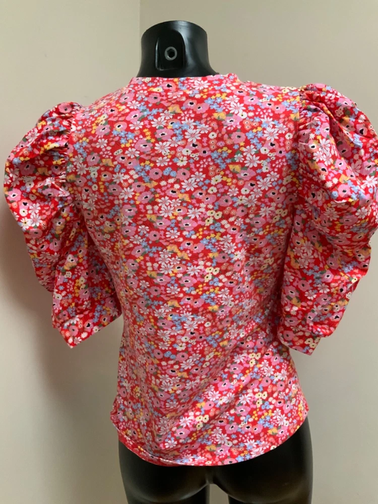 This top is absolutely stunning! The vibrant red ditsy floral print is perfect for summer, and the puff sleeves add a fun, stylish touch. The jersey fabric is soft, stretchy, and super comfortable—great quality for the price. Fits true to size (UK 10) and looks even better in person. Love the details like the neat stitching and flattering cut. Seller shipped it super fast, and the measurements provided were spot on. Definitely recommend—such a cute, versatile piece for casual outings or dressing up!
