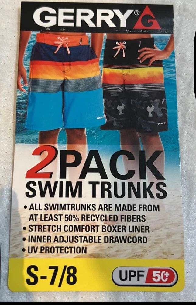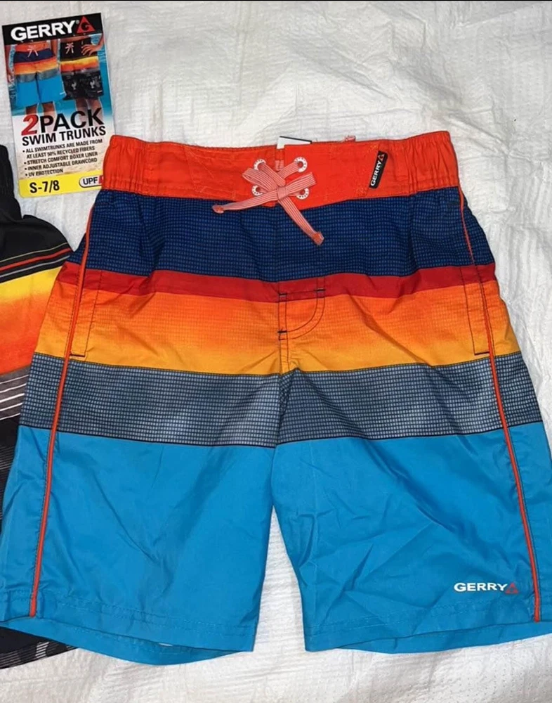 Get ready for a fun-filled day at the beach or pool with these Gerry boys 2 pack swim trunks in size S(7/8). Made of high-quality polyester material, these trunks will keep your little one comfortable and protected from the harmful rays of the sun with a 50+UPF rating. The colorful multicolor design will make him stand out in the crowd and the trunk style provides ample coverage for all the splashing and playing. Perfect for boys who love to swim and play, these trunks are a must-have addition to any beach or pool day. The brand Gerry is known for its quality products and these trunks are no exception. So, grab a pair of these swim trunks today and get ready for endless summer fun!