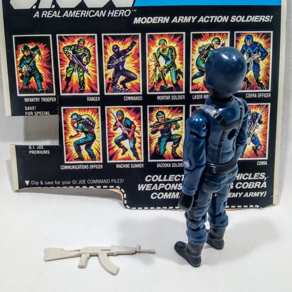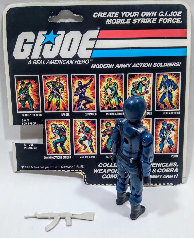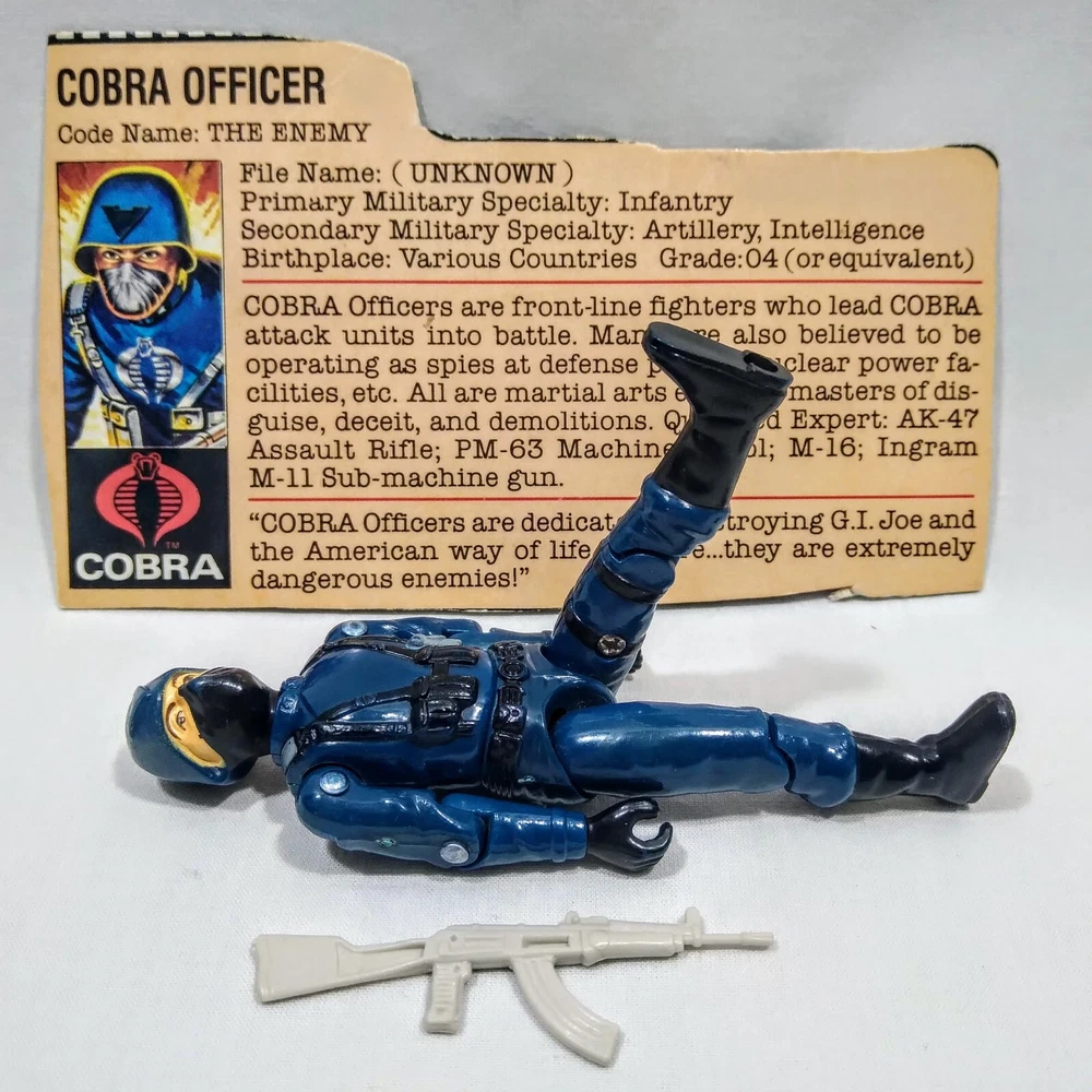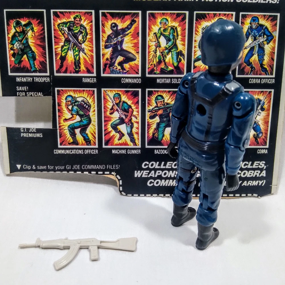 GI Joe 1982 Cobra Officer v1 Straight Arm Complete Machine Gun File Card Back Logo has rubbed off.