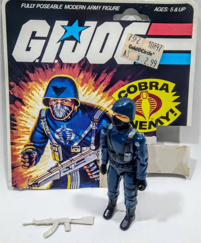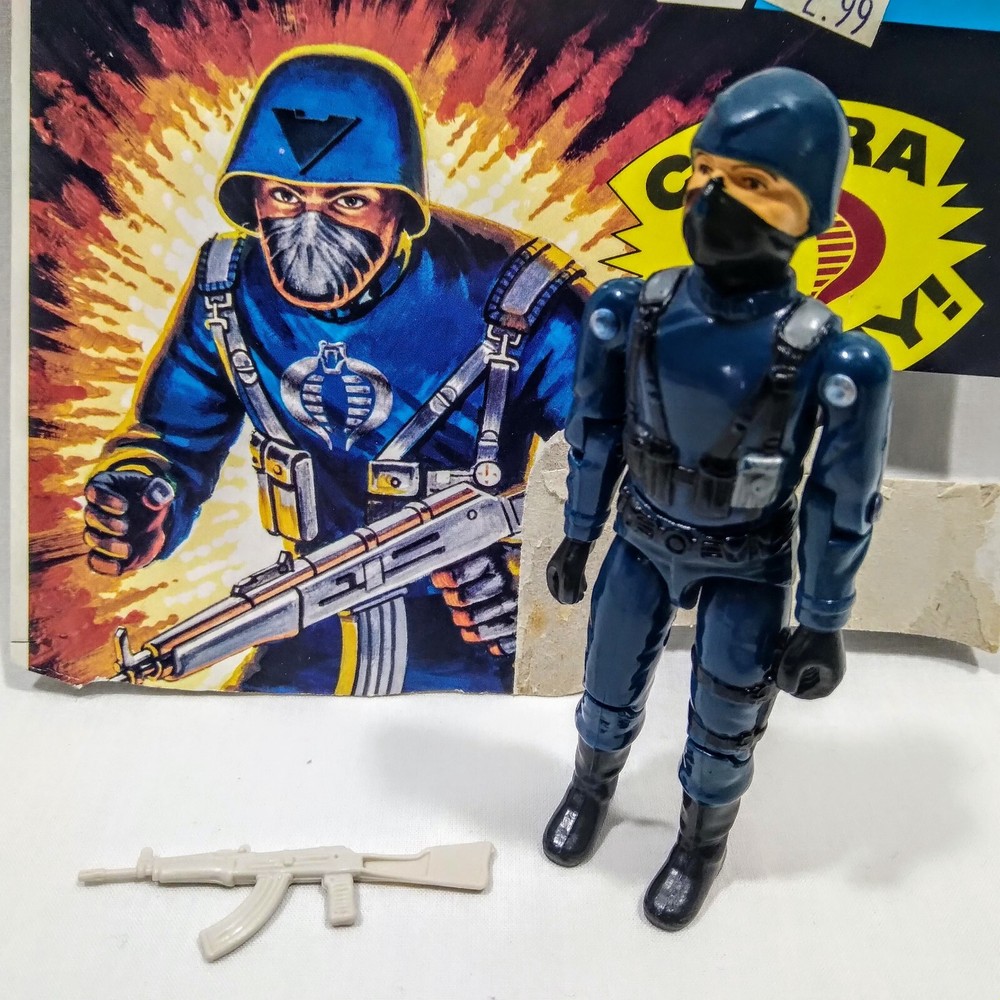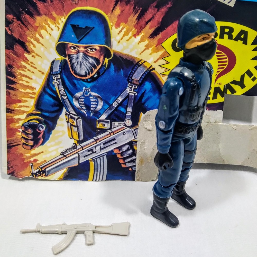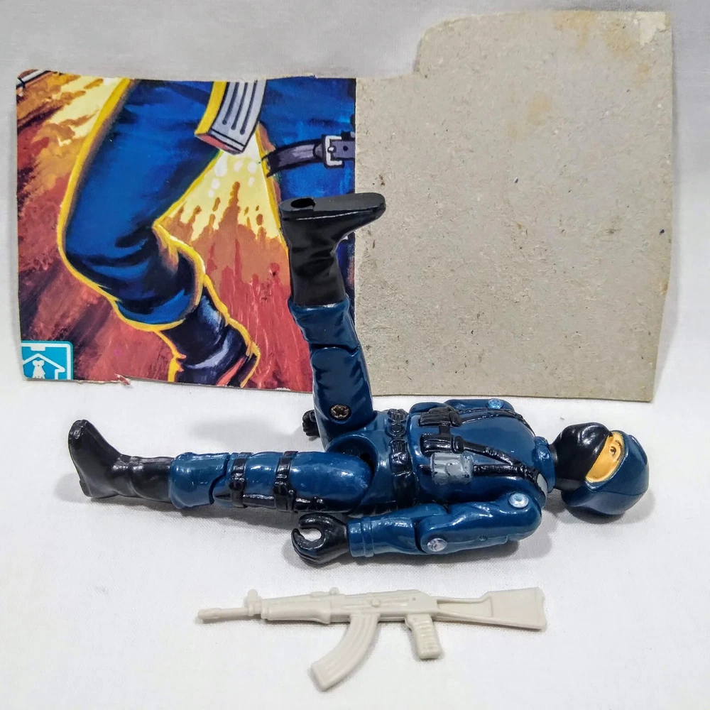GI Joe 1982 Cobra Officer v1 Straight Arm Complete Machine Gun File Card Back Logo has rubbed off.