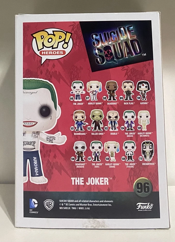 Capture the essence of chaos with the Joker Shirtless #96 Funko Pop! Heroes Suicide Squad Vinyl Figure. A must-have for fans and collectors, this vibrant multicolor figure stands at 4 inches tall and is crafted from high-quality vinyl, ensuring it stands the test of time alongside your other DC Universe collectibles. Whether you're a follower of the Suicide Squad series or a dedicated Funko collector, this limited edition piece, featuring the iconic antihero in his unmasked glory, is a striking addition to any collection. Complete with its original packaging, this figure is a celebration of the Joker's legacy from Warner Bros. Animation's animated films and TV shows. 😊😊 PLEASE SEE OTHER ITEMS, I M LISTING THIS FROM A MEGA NERF LOT - I WILL BE LISTING NERF PISTOLS, RIFLES, ACCESSORIES, ETC - NERF RIVALS WHITE/RED, ACCUSTRIKE, TERASCOUT, RAMPAGE, ZOMBIE ETC m, VIDEO GAMES (NINTENDO GB, DS,WII, PSP) - HOT-WHEELS 100S, TECH DECKS, MATCH BOX, MUSCLE MACHINES, FUNKO POPS, TOYS, PLUSH, BOARD GAMES, DVDS, CDS, BLURAYS PUZZLES, LEGOS, ETC FREE SHIPPING ⭐️⭐️⭐️⭐️ PROCESSING TIME: 3 DAYS I HAVE ALMOST 100 FUNKO POPS FROM VARIOUS SETS TO INCLUDE: MASTERS OF THE UNIVERSE, STRANGER THINGS, MARVEL, DISNEY, JUMBO SIZE ETC - PLEASE SEE STORE - FAST FREE SHIPPING - I WOULD BE WILLING TO COMBINE SHIPPING FOR MULTIPLE ORDERS - I HAVE MANY ITEMS PER SET - ITEM: - SUICIDE SQUAD - DATE: NAME : THE JOKER # : 96 SHORT CARD? - N/A DESCRIPTION: - NEW - SHOWS MILD SIGNS OF SHELF WEAR - RETRO/ VINTAGE - PREOWNED ITEMS MAY SHOW SIGNS OF SHELF WEAR DUE TO THE NATURE OF AGE. THANKS MUCH FOR YOUR SUPPORT MY DEAR CUSTOMER ⭐️🙏