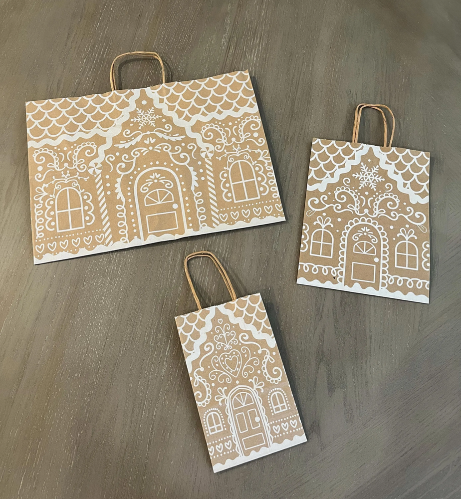DR E A M P A R T Y C R E A T I O N S Thank you for visiting us: GINGERBREAD COTTAGE Gift Bag Bundle with Tissue Paper, Gift Tags, Raffia Ribbon Choose Bundle Package INCLUDED IN BUNDLE PACKAGE: *********************************************************** (Pack of 3 Includes): 1 ROSE BAG 1 CUB BAG 1 VOGUE BAG 10 Yards Pearlized Raffia 4 -- 15" x 20" Design Tissue Paper 6 -- 20" x 30" Solid Color Tissue Paper 3 Gift Tags *********************************************************** (Pack of 9 Includes): 3 ROSE BAG 3 CUB BAG 3 VOGUE BAG 30 Yards Pearlized Raffia 12 -- 15" x 20" Design Tissue Paper 18 -- 20" x 30" Solid Color Tissue Paper 9 Gift Tags *********************************************************** (Pack of 15 Includes): 5 ROSE BAG 5 CUB BAG 5 VOGUE BAG 50 Yards Pearlized Raffia 20 -- 15" x 20" Design Tissue Paper 30 -- 20" x 30" Solid Color Tissue Paper 15 Gift Tags *********************************************************** (Pack of 30 Includes): 10 ROSE BAG 10 CUB BAG 10 VOGUE BAG 100 Yards Pearlized Raffia 40 -- 15" x 20" Design Tissue Paper 60 -- 20" x 30" Solid Color Tissue Paper 30 Gift Tags *********************************************************** BAG SIZES: ROSE SIZE -- 5-1/4x3-1/2x8-1/4" CUB SIZE -- 8x4-3/4x10-1/2" VOGUE SIZE -- 16x6x12" paper gift bags are 100% recyclable, made with a minimum of 40% post consumer recycled content HOW TO COMBINE SHIPPING: Shipping will combine if you add all the DREAMPARTYCREATION items to your Ebay cart first without paying. Once all the items you need are in your Ebay cart, The shipping will combine at checkout. After payment is made, We are unable to combine shipping for additional item.