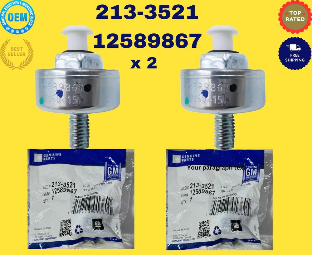 Your looking at a new in GM bag knock sensors that fits multiple GM V8 model engines between 1999-2007. This is compatible with 4.8L, 5.3L, 6.0L, LS1, and LS6 engines. Models with these engines include 99-04 Corvette LS1 99-02 Camaro LS1 99-02 Firebird LS1 2004 GTO 03-07 Express model vans 02-06 Avalanche 99-06 Silverado's 00-06 Tahoe 00-06 Suburban 99-06 Sierra Models 00-06 yukon 02-06 all escalade models 03-04 bravada and trailblazer 04-05 SSR 03-07 h2 Hummer 2005 sts model Domestic Shipping: Shipping quoted is for the continental US. Alaska, Hawaii and Puerto Rico shipping is higher. We combine shipping on multiple item purchases. Please wait for us to do so. Smaller items are mailed USPS, larger items are UPS. The auction will say which one. International Shipping: We ship to Australia, Canada, New Zealand and Europe. USPS is used for all International shipments. Wait for us to send your invoice with the international shipping amount. Actual shipping plus $6.00 for handling of International paperwork. Items selling for $40 or over will be shipped via USPS priority mail with Insurance. We combine shipping on multiple item purchases. Please wait for us to do so. Return policy: Returns accepted withing 30 days of purchase if not happy for any reason. Shipping and handling will not be reimbursed. Item must be in new condition and in original box. Return with copy of original invoice and a note what you wish us to do. International buyers, contact us first before returning item. Listing and template services provided by inkFrog
