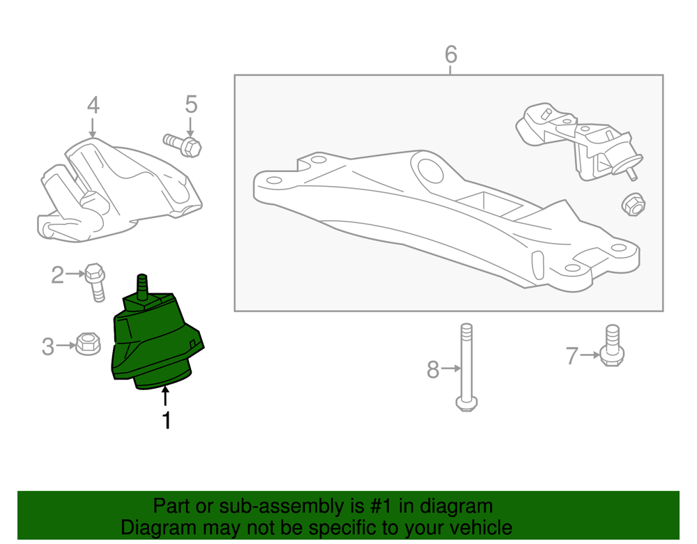 World Parts Direct Genuine GM Driver Side Engine Mount 84122579 Part can be found as # 1 in the diagram above Product Description With supercharger. Lined with rubber to help reduce engine vibration Designed to function with all surrounding components to help ensure that the mount bolts correctly and there is minimal interference with other parts on your vehicle Specifications Brand GM Manufacturer Part Number 84122579 SKU 84122579 Product Genuine GM Driver Side Engine Mount 84122579 ONLY PART REFERENCE #1 ON THE DIAGRAM IS INCLUDED About Us WorldPartsDirect is a small, Texas based business located in the Dallas metroplex. There are about twenty of us that work tirelessly to get you the genuine, OEM parts you need at unbeatable prices. We pride ourselves in top quality customer service and our commitment to be the business we would want to shop with. We have one of the largest inventory networks in the country along with some of the most aggressive discounts. We love cars, and we love what we do! We hope you will love shopping with us , and we always welcome feedback on how we can make your shopping experience even better. Terms and Conditions Compatibility Guarantee (optional free service): Applies when you include your VIN during or before checkout. Simply click "Message to Seller" during checkout and include your VIN with any relevant details (ex: driver/ passenger side). Our fitment experts will confirm compatibility before shipping. If we determine that you purchased an incompatible part, we will correct your order if possible. If we cannot correct your order, we will notify you of the issue (ex: discontinued item) and give you the option to cancel. Part Authenticity and Warranty Guarantee: When you order from us, we guarantee that you will receive a genuine, OEM part. We do not stock anything aftermarket! Our parts are warrantied nationwide for 1 year at every Mopar (Chrysler/Dodge/Jeep/Ram) or General Motors (Chevrolet/Buick/GM/GMC) dealer in the country, depending on the brand of part you ordered. We are able to provide documentation that proves the validity of your purchase from our licensed dealership at anytime upon request. This documentation can be used to redeem this warranty if needed at the dealership of your choice and at no cost to you. Return Policy All of our products can be returned within 30 days. Please open a request for any of these reasons: Doesn't Fit Changed My Mind Found a Better Price Just Didn't Like it Ordered by Mistake The reason you pick has no impact on your refund amount, but it has a big impact on us as a seller. Choosing other reasons may delay the refund per an internal investigation and potential eBay appeal. If a part fails at anytime during the 1 year warranty period, any licensed new car dealership in the country that carries your brand of vehicle will replace the part for free. Simply request our dealer invoice for the part and provide it to your preferred dealer along with the defective part. Home • Newsletter Signup • Contact Us Copyright © 2025 World Parts Direct , All rights reserved. Solution by RevolutionParts, Inc. :: Design by OCDesignsOnline