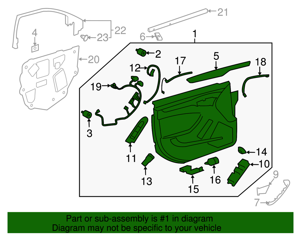 World Parts Direct Genuine GM Light Cashmere Front Driver Side Door Trim 22981790 Part can be found as # 1 in the diagram above Product Description Wagon, with light pkg, CTS-v, cashmere. Helps conceal your vehicle's door components, seals, and moisture barriers Enhances the appearance of your vehicle This GM Genuine Part is designed, engineered, and tested to rigorous standards and is backed by General Motors Collision parts are designed to help promote proper and safe repair Specifications Brand GM Manufacturer Part Number 22981790 SKU 22981790 Product Genuine GM Light Cashmere Front Driver Side Door Trim 22981790 Replaces 22815762 ONLY PART REFERENCE #1 ON THE DIAGRAM IS INCLUDED About Us WorldPartsDirect is a small, Texas based business located in the Dallas metroplex. There are about twenty of us that work tirelessly to get you the genuine, OEM parts you need at unbeatable prices. We pride ourselves in top quality customer service and our commitment to be the business we would want to shop with. We have one of the largest inventory networks in the country along with some of the most aggressive discounts. We love cars, and we love what we do! We hope you will love shopping with us , and we always welcome feedback on how we can make your shopping experience even better. Terms and Conditions Compatibility Guarantee (optional free service): Applies when you include your VIN during or before checkout. Simply click "Message to Seller" during checkout and include your VIN with any relevant details (ex: driver/ passenger side). Our fitment experts will confirm compatibility before shipping. If we determine that you purchased an incompatible part, we will correct your order if possible. If we cannot correct your order, we will notify you of the issue (ex: discontinued item) and give you the option to cancel. Part Authenticity and Warranty Guarantee: When you order from us, we guarantee that you will receive a genuine, OEM part. We do not stock anything aftermarket! Our parts are warrantied nationwide for 1 year at every Mopar (Chrysler/Dodge/Jeep/Ram) or General Motors (Chevrolet/Buick/GM/GMC) dealer in the country, depending on the brand of part you ordered. We are able to provide documentation that proves the validity of your purchase from our licensed dealership at anytime upon request. This documentation can be used to redeem this warranty if needed at the dealership of your choice and at no cost to you. Return Policy All of our products can be returned within 30 days. Please open a request for any of these reasons: Doesn't Fit Changed My Mind Found a Better Price Just Didn't Like it Ordered by Mistake The reason you pick has no impact on your refund amount, but it has a big impact on us as a seller. Choosing other reasons may delay the refund per an internal investigation and potential eBay appeal. If a part fails at anytime during the 1 year warranty period, any licensed new car dealership in the country that carries your brand of vehicle will replace the part for free. Simply request our dealer invoice for the part and provide it to your preferred dealer along with the defective part. Home • Newsletter Signup • Contact Us Copyright © 2025 World Parts Direct , All rights reserved. Solution by RevolutionParts, Inc. :: Design by OCDesignsOnline