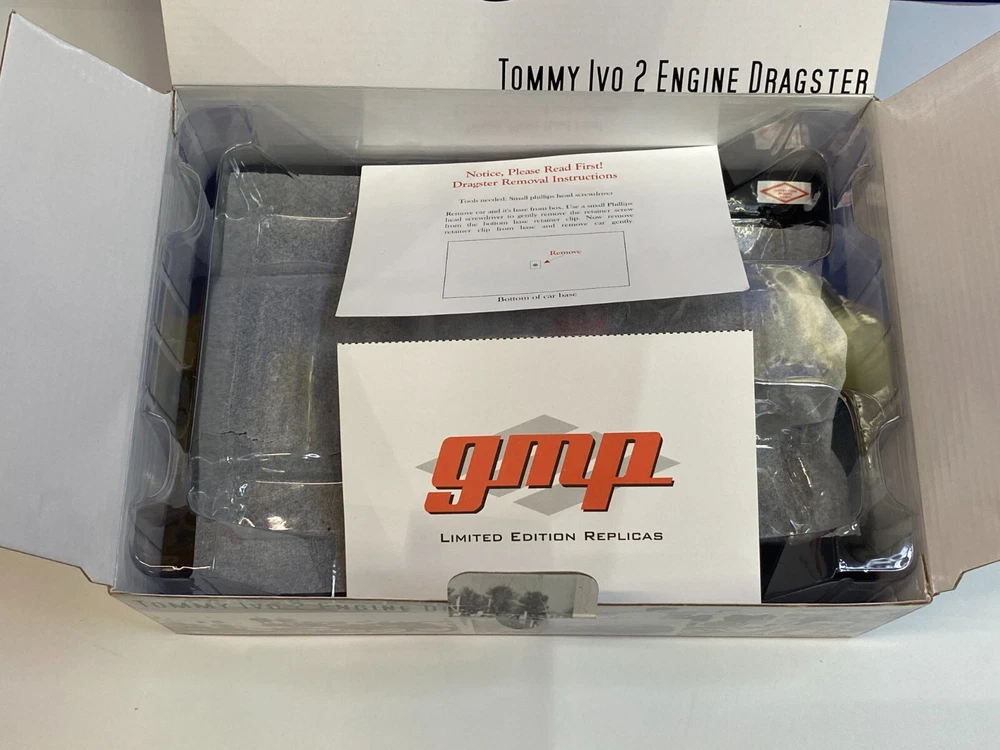 UP FOR YOUR CONSIDERATION IS A GMP 1/18 SCALE TOMMY IVO 2 ENGINE DRAGSTER W/ BONUS DVD. ITEM IS 1 OF 5000. ITEM IS NEW IN THE PACKAGE. CAR & BOX LOOK TO BE IN NICE CONDITION. ITEM WAS ONLY TAKEN OUT OF BOX FOR PICTURES. CHECKOUT PICTURES FOR FURTHER DESCRIPTION. THE ITEM IN THE PICTURES IS THE ITEM YOU WILL RECEIVE. WILL BE PACKAGED AND SHIPPED WITH CARE. THANKS FOR LOOKING.. I PACK ALL ORDERS WITH CARE AND SHIP THEM IN A TIMELY MANNER TO ENSURE SAFE ARRIVAL OF YOUR GOODS. IF SOMETHING ARRIVES AND IS NOT TO YOUR SATISFACTION, PLEASE LET ME KNOW AND I WILL MAKE IT RIGHT. FEEDBACK WILL BE GIVEN TO BUYERS, WHEN FEEDBACK IS GIVEN TO SELLER. THANK YOU FOR YOUR BUSINESS.
