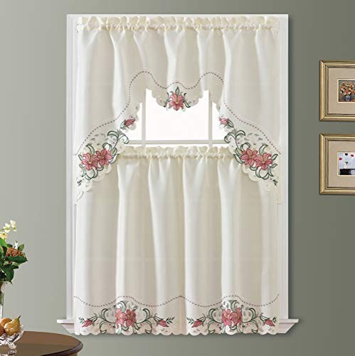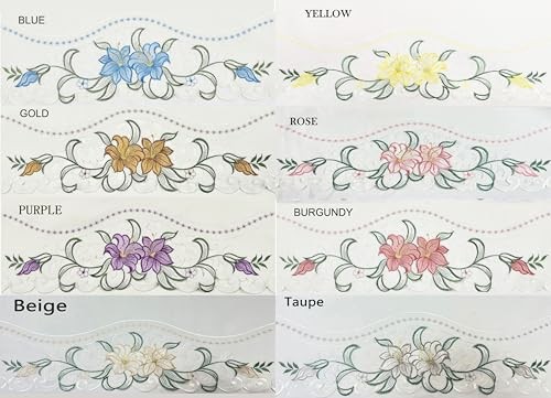 Return Policy Fast Delivery Trusted seller GOHD Lily Fragrance. 3pcs Multi-Color Embroidery Kitchen Cafe Curtain Set Swag and Tiers Set with cutworks. (Burgundy) Product Description Multicolor embroidery on IVORY ground fabric. Classic design, beautiful heartthrob Nice quality & details with flower core embroidered with gold color thread. Elegant color on both embroidery and ground fabric so that it can well match with any home decoration. 3pcs set: Swag valance of about 57.5" wide x 36" long / 2pcs tiers of about 28" wide x 36" long each. It can fit for window size of about 38"~54" (96 ~138cm)wide, 50"~62" (127 ~158cm) length. You can also use swag or the 2 tiers alone for small windows. Shipping Returns Payment Shipping Shipping is FREE to all addresses other than APO/PO boxes in the lower 48 states. All our stock ships from US-based warehouses. Shipped via USPS or UPS (depending on location and package weight) Unless stated otherwise, all orders will ship within 24-72 hours of your payment being processed. Check our feedback to see the great reviews of FAST shipping we offer. Returns Seller does not accept returns Payment We currently accept payment via eBay managed payments only. Once payment is cleared, we will dispatch your shipment within 1-3 business days. Please refer to the "Shipping" tab for more information regarding shipping speed to your destination.