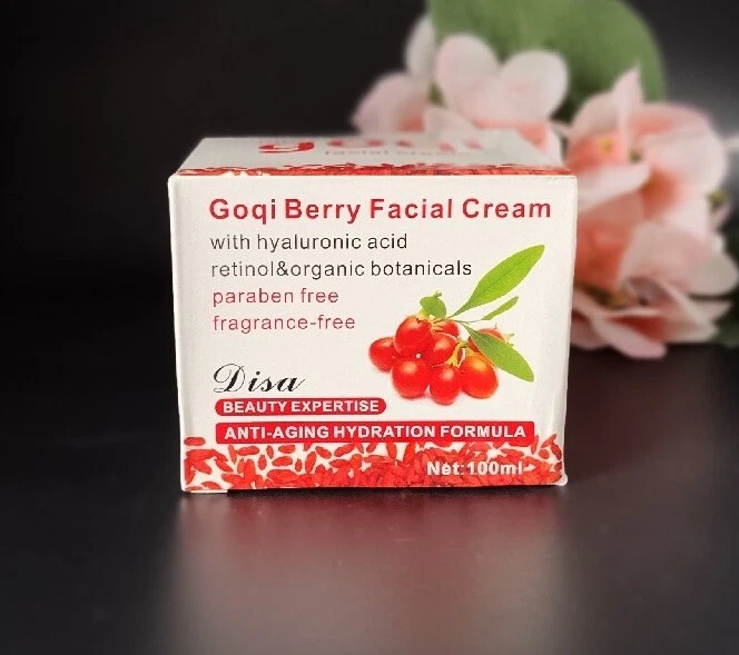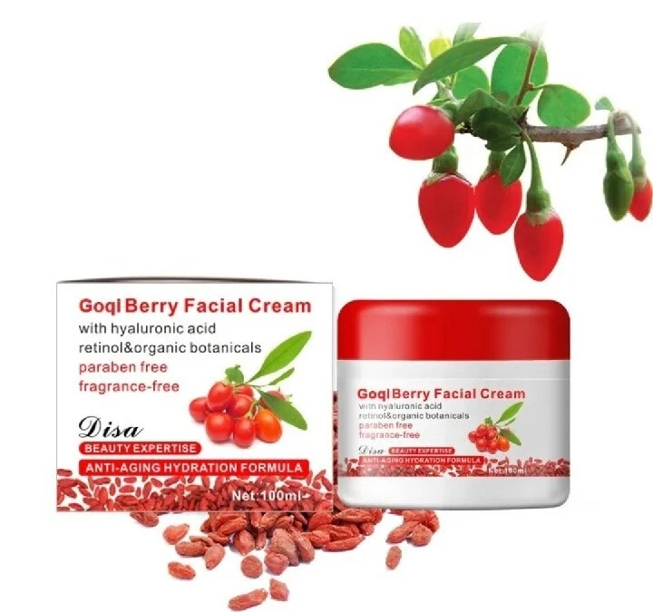 GOJI berry facial Cream 100ml Hyaluronic Acid Anti Aging .. Shipped with USPS first class mail. Functions: 1.With Hyaluronic acid, retinol & organic botanicals 2.Paraben-Free 3.Fragrance-Free 4. Anti-aging Hydration Formula 5.Inspired by the powerful antioxidant protection of the exotic goji berry, Goji Berry Facial Cream represents a breakthrough in anti-aging skin care wellness. We combined the nutrient rich organic goji berry (Himalayan Lycium Berry) with specially selected health-promoting skin care ingredients including hyaluronic acid and retinol. Use this light, fragrance-free facial moisturizer daily to protect, hydrate and revitalize aging facial skin for a smoother, more youthful-looking complexion. Non-greasy. Absorbs quickly. Suggested Use: Smooth a small amount on thoroughly cleansed face and neck using gentle, upward strokes. Use in the morning or at night as a replenishing moisturizing cream, alone or under make-up.