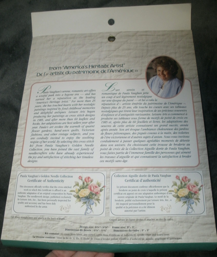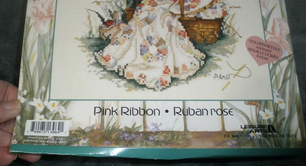 GOLDEN NEEDLE COLLECTION Cross Stitch Kit Pink Ribbon by Paula Vaughan 113964 This kit is new and sealed in package. The finished size is 6 3/8" by 6 5/8" The kit contains 32 linen fabric, instructions, Chart, needle, Certificate of Authenticity, and presorted cotton floss. This kit features a beautiful quilt draped on a picnic basket and a charming straw hat with a Pink Ribbon hanging on a fencepost If you have any questions or problems - before or after. Please message me.