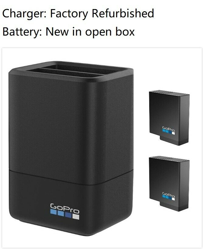 Original GOPRO AADBD-001 DUAL BATTERY CHARGER + 2 Pieces GoPro Rechargeable Battery AABAT-001 for HERO 5 & HERO 6 & HERO 7 1220 mAh 100% Genuine GoPro battery and charger, fast shipping in USA Charger Condition: Factory refurbished Battery condition: New, never used, Fully tested! Best offer? Please offer $25 then you will get it This listing include one Charger, two pieces battery, one charging cable NO BOX, NO MANUAL, NO OTHER ACCESSORIES COMPATIBLE WITH: HERO (2018) HERO 5 HERO 6 HERO 7 BLACK We offer no hassle return service, if you are not satisfied with our item, please start a return process if you like, we will follow it immediately. If you like a replacement, please purchase another one after you return the defective one. Thank you!