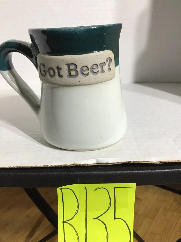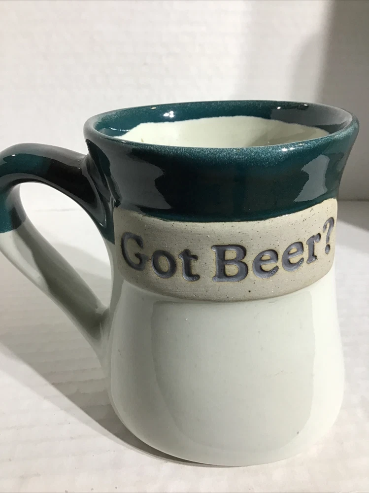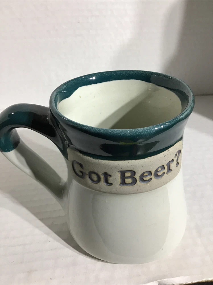 GOT BEER COFFEE MUG. Raised 3D POTTERY MUG. Art Deco Print Mug. B135. Shipped with USPS Priority Mail.