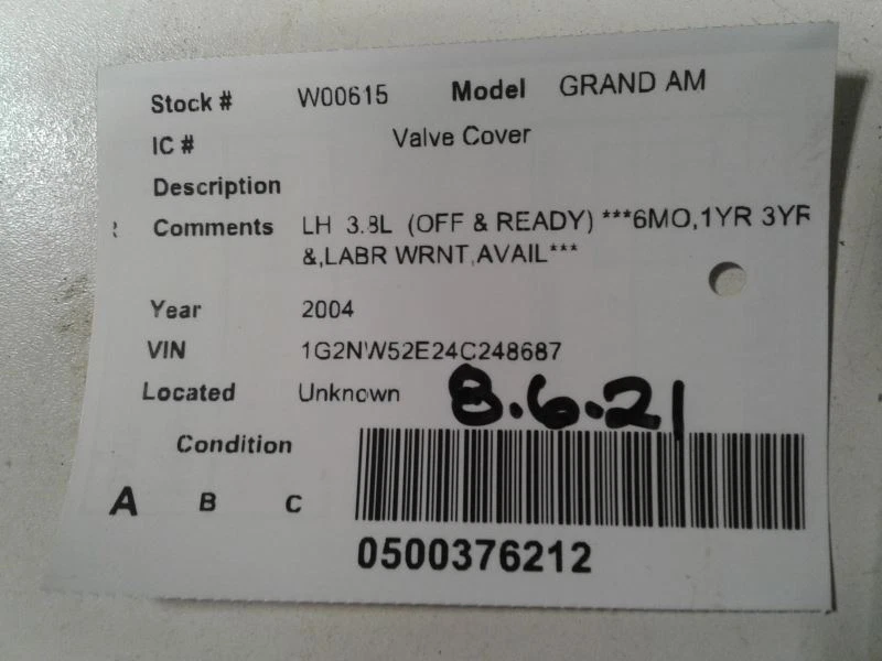 Powered by Frooition All Items See our eBay store for more great items >> Shop Categories ABS Anti-Lock Brake Part Other Aftermarket Stereos Air Bags Amplifiers Anti-Lock Brake Part Automobiles Stereos A/V Equipment CD Changers Center Caps + Wheel Covers Chassis Brain Box Coil Packs Computer + Control Modules Distributors Door Mirrors Door Panels DVD Equipment Engines Front Lamps Grilles Headlamp & Front Lamps Heat A/C Control Heater Motor/Blower Starters Interior Switches Interior Switch / Controls Keyless Entry FOB Owners Manual's Speedometers Tail Lights Transmission Wheels + Tires Alternators Fuel Pumps Window Regulators & Controls Steering Pumps Wiper Motors Compressors INFO/GPS/TV SCREENS Radiator Windshield Washer Bottles Condenser Shifters Windows & Sunroof Turbo Superchargers Glass Doors Air Cleaner Box Spindles Drive Shafts GRAND AM 2004 Valve Cover 1443738 Item Description This listing is for the item pictured. It is ready to ship and comes with a 90 day warranty! eBay compatibility may be incorrect. See below for fitment information and any notes pertaining to this specific part. Feel free to contact us if you have any questions. Thanks for looking! Donor Vehicle: Year: 2004 Model: GRAND AM Stock #: W00615 Mileage: 102000 Notes: LH 3.8L OFF READY 6MO,1YR 3 This part will only fit: For more parts from this vehicle, CLICK HERE . About Us About Us Payment Shipping Terms Returns About Us We are a family-owned business with over 30 years in the used car parts industry. We're proud to provide excellent quality used auto parts at famously discounted prices! Over time we have grown to 4 locations in Harrison, MI, Lansing, MI, Saint Johns, MI, and Toledo, OH. We are here to serve you Monday thru Friday 8 a.m. to 5 p.m. EST. If you have any concerns or questions, please feel free to message us here on eBay. We will normally get back to you within 12 hours during the work week. Payment Payment We accept Paypal, all major credit cards and cash (if you are picking up the item). Payment is required within 2 days of winning a listing. If payment is not made after 2 days, an unpaid item case will be opened. Shipping Shipping Most items will ship ground with UPS or USPS. We may use other carriers at our discretion. In some instances, freight orders will require a business address with a loading dock or forklift. A good working phone number is required for all orders. Local pickup is also an option on any order. Our 4 locations are open Monday thru Friday from 8 a.m. to 5 p.m. EST. Please check with us before driving out to make sure we have the part ready at the location nearest to you. Terms Terms Most items include a 90-day warranty (unless otherwise indicated). This coverage is included on all new or used parts unless otherwise stated in the listing or on the front of the invoice. This warranty is non-transferable. Labor is not covered under any circumstance unless a separate labor warranty is purchased. Extended warranties are also available. Please see our website for complete details and exclusions. Returns Returns We allow 60 days for returns. If you ordered the incorrect part or simply do not need it, you are responsible for the origin and return shipping. Helpful Links Add to Favorite Sellers Sign up to Newsletter View Feedback Contact Seller Visit seller's eBay Shop About Seller Page More Items! View more great items Driver Left Tail Light Fits 09-12 MKS 1804560 $119.99 Hub Front 4 Lug Without ABS Fits 05-10 COBALT 625489 $114.99 Engine 2.0L VIN V 5th Digit Turbo Fits 12-18 TIGUAN 1798940 $3,624.49 Driver Tail Light VIN 1 4th Digit Limited LS Fits 13-16 MALIBU 1793332 $99.99 Powered by Frooition Frooition | No-js Template | eBay design, eBay store design, eBay shop design, eBay template design, eBay listing design (ver:froo_no_js) This listing is currently undergoing maintenance, we apologise for any inconvenience caused.