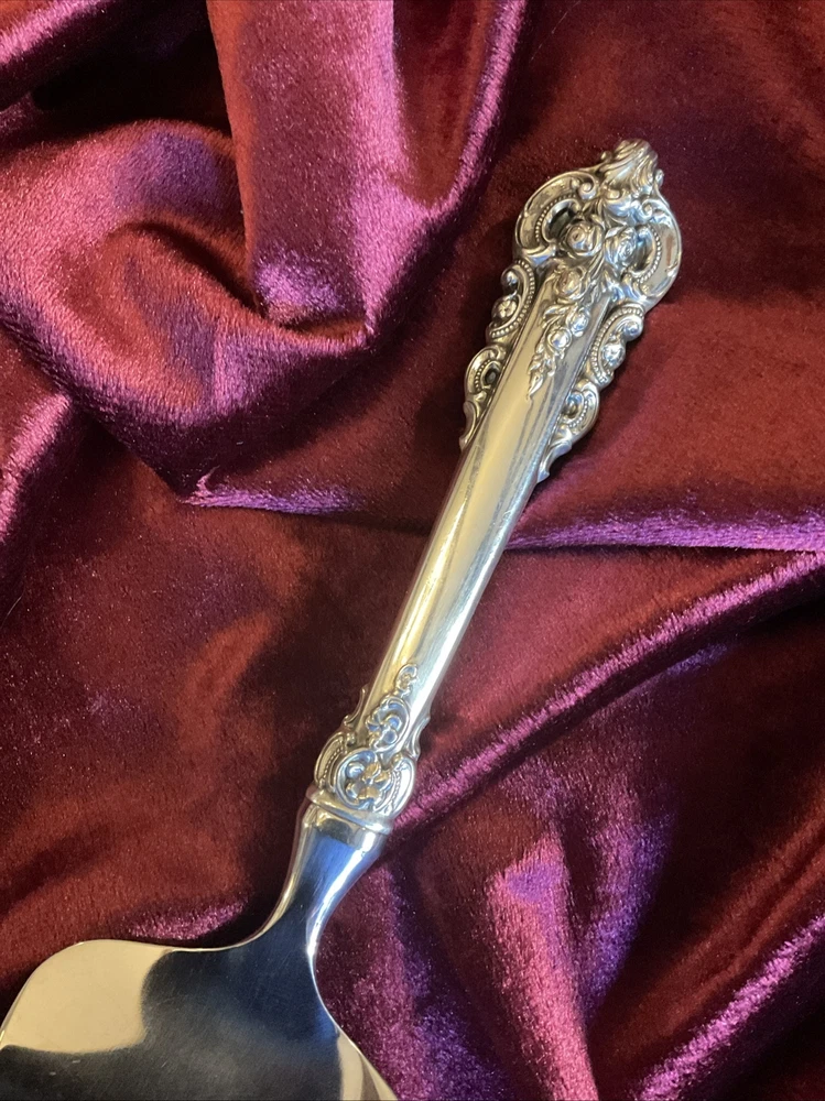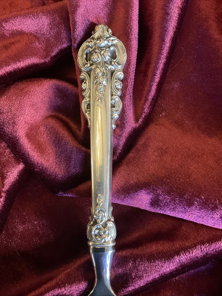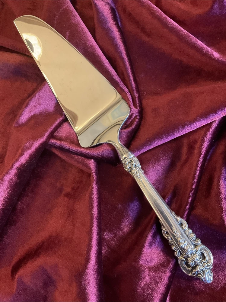 GRAND BAROQUE by Wallace Silver 1941 11” Pie or Cake Server Sterling Handled and with a Modern Stainless Blade No Monogram A+