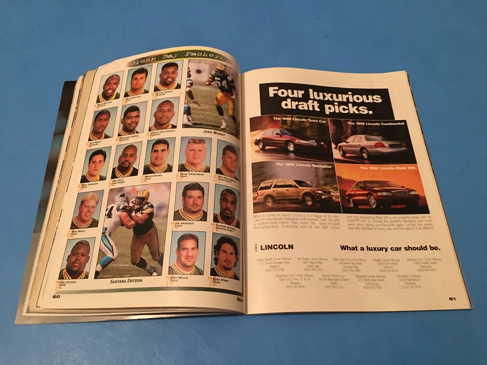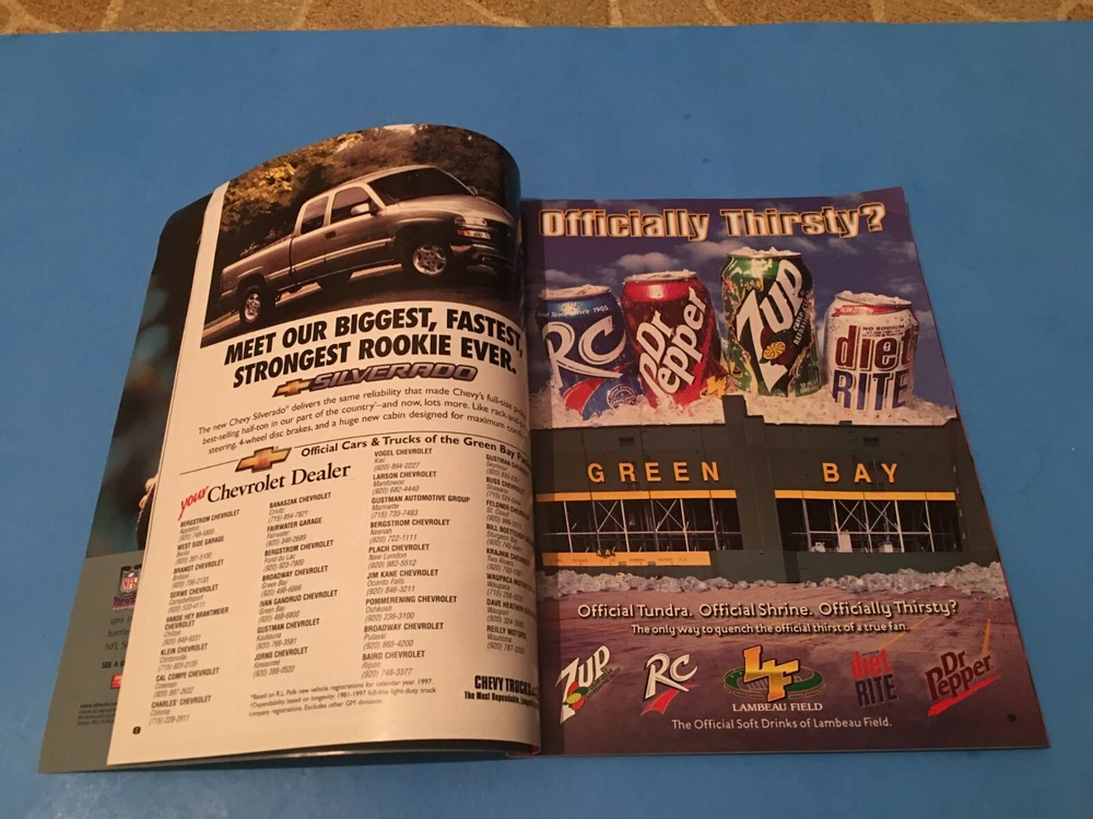 This listing is for (1) GREEN BAY PACKERS GAME PROGRAM as described. Very Good condition overall - the front cover shows some modest wear. BE SURE TO VISIT OUR EBAY STORE FOR MORE SPORTSCARD LOTS AND A FINE SELECTION ROOKIES, INSERTS, TEAM SETS AND MORE.. EBAY STORE LINK ---> http://stores.ebay.com/Stumpys-Sports Location: bsmt/table