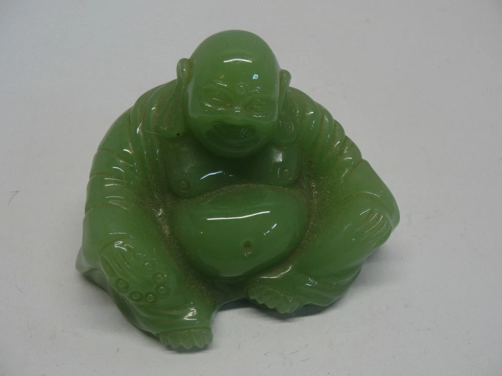 This is a green Buddha figurine. It stands 3" tall, weights 14 oz and is in excellent condition . Thanks for looking...