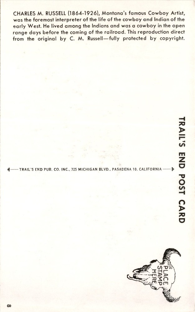 $ 10.541952, TRAIL'S END PUB. CO., INC., Charles M. Russell, Montana, Postcard