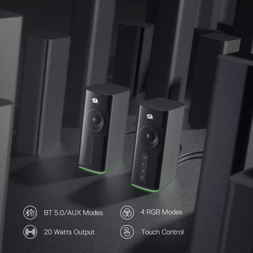 Wireless Freedom Play - BT 5.0 wireless mode adopted for premium lossless sound quality, stable and no-delay audio transmission makes you get 100% enjoyed with your playlists from your phone, tablet or laptop. 2.5-inch Audio Bass Unit - Equipped with 4 advanced sound units (bass/treble driver x 2) with full range 2.0 channel enhanced stereo core,GS814 is a great choice to immerse in the music world! Easy-access Touch Control - Individual 4 Touch control buttons make adjusting the speakers functions efficient and accurate. Easily achieve volume up and down/ AUX/ BT mode switch/ previous and next Track. Dynamic RGB Lighting - Not only the sound quality is solid, but also the lighting bar is attractive. 4 modes are choosable for different vibes, the musical sync mode is our most recommended one to try. Plug & Play for Broad Compatibility - DC powered with 3.5mm audio allows this rockstar to party on wide types of stages for PC, TV, and Laptop. Up to 83 inches cable length between two speakers.