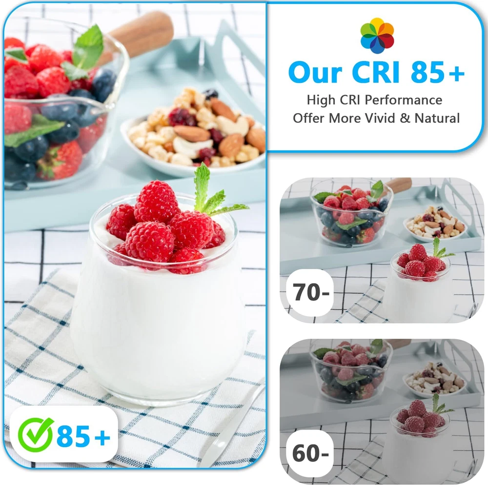 Technical Specifications: Lighting Technology : LED Color Temperature (K) : 6000K Cool White Bulb Type : Household Bulb Shape : MR16 Indoor Light Bulb Base Code : GU10 Wattage (watts) : 4 Light Output (lumens) : 450 High Lumens Watt Equivalence : 50w Color Rendering Index (RA) : 85+ Input Voltage:120VAC Average Life (hours) : 25,000 Dimmable : Non-dimmable Package contents: 5 x LED Light bulbs (6000K Cool White) NOTE: 1. These LED bulbs are not dimmable, please DO NOT use them with dimmer switch. But prevent eye fatigue and provide instant bright light without buzzing or flickering, effectively protect your families' eyesight and health. 2.These lightbulbs can be used in the GU10 base enclosed light fixtures. Ideal for house, hotel, offices, restaurants or any other places! 3.It is a standard MR16 shape which is 1.97*2.09 inches, good shape for commercial lights or any space that needs bright home lighting. Super Bright & High CRI: Build-in the latest LED technology, the MR16 GU10 LED bulb gives off a full 450 lumens of brightness and a stable 6000k daylight glow. Features with more than 85+ CRI and a wide beam angle of 120 degrees, the GU10 bulbs provide you with vivid and natural color performance, ideal for commercial lights or any space that needs bright home lighting. Energy Efficient & Money Saving: Designed with energy-efficient LED chips, 4W GU10 LED bulbs offers you the perfect replacement for traditional 50W halogen bulbs. Based on 3 hours of use per day, the GU10 led bulbs daylight will reduce heat output and save up to 90% on the electric bills of lighting. Note: These LED lights are not dimmable. Flicker-Free & Eye Protection: Meet strict test criteria including flicker, strobe, glare and color rendition, NO UV or IR radiation, non-dimmable GU10 light bulb prevents eye fatigue and provides instant bright light without buzzing or flickering, effectively protects your families’ eyesight and health. Long Lifetime: The 50w GU10 bulb LED has an outstanding long-lasting life which is rated at over 25,000+ hours, last 25 times longer than traditional halogen, incandescent and fluorescent bulbs, largely reducing the frequency of bulb changes while providing the same lighting quality. Easy Installation & Wide Application: Standard MR16 shape with universal GU10/Bi-pin lock base, the track lighting bulbs can be easily screwed into all standard GU10 cans fixtures, no wire needed, Great spotlight bulb for recessed track lighting, range hood, stovetop, living room, laundry room, kitchen, bedroom, bathroom, hallway, entryway, dining room, garden, garage, porch, patio, front porch lighting, office, hotel.