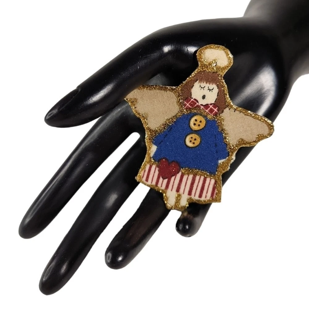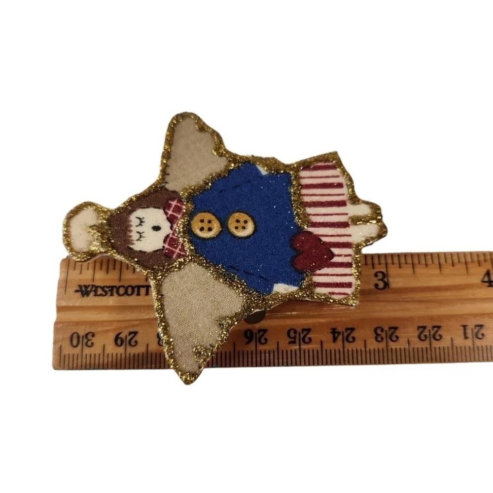 This set includes 2 rustic, country style pins. One is a resin, Uncle Sam bear, made to look like carved wood. The other is a decorated foam brooch. Both are in good condition, no issues